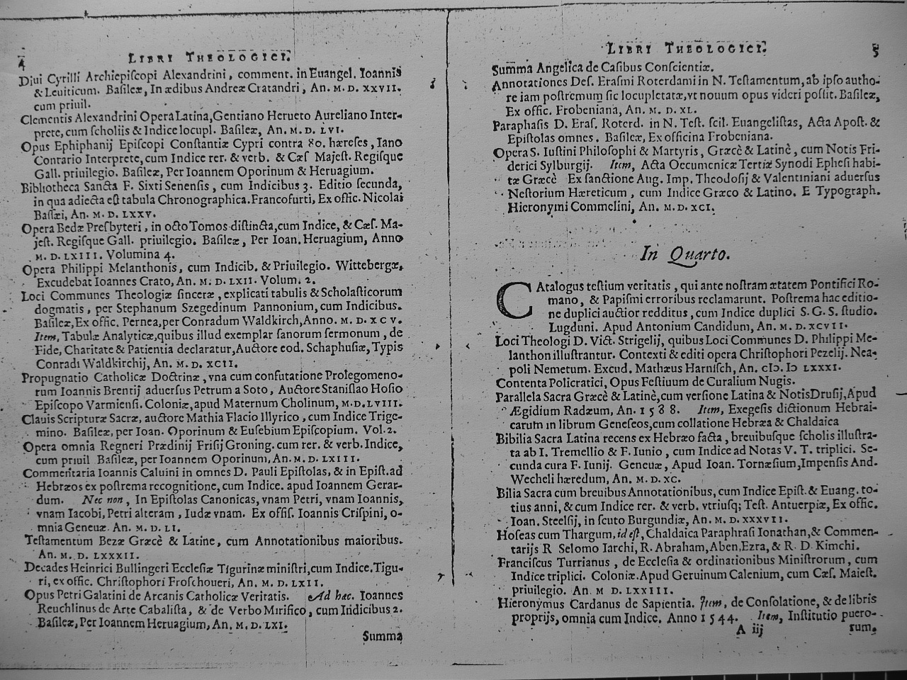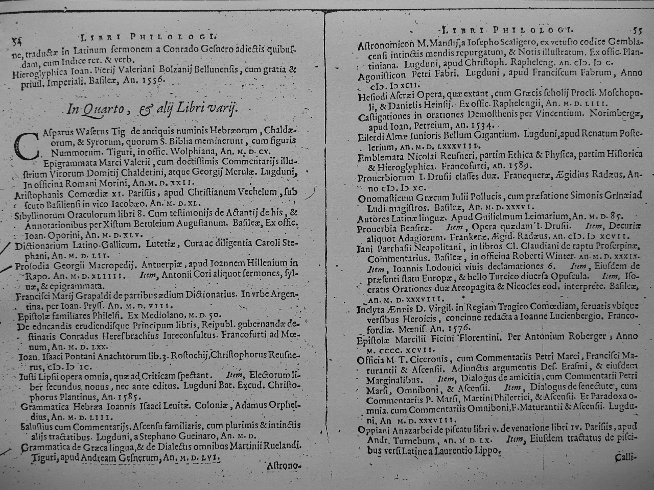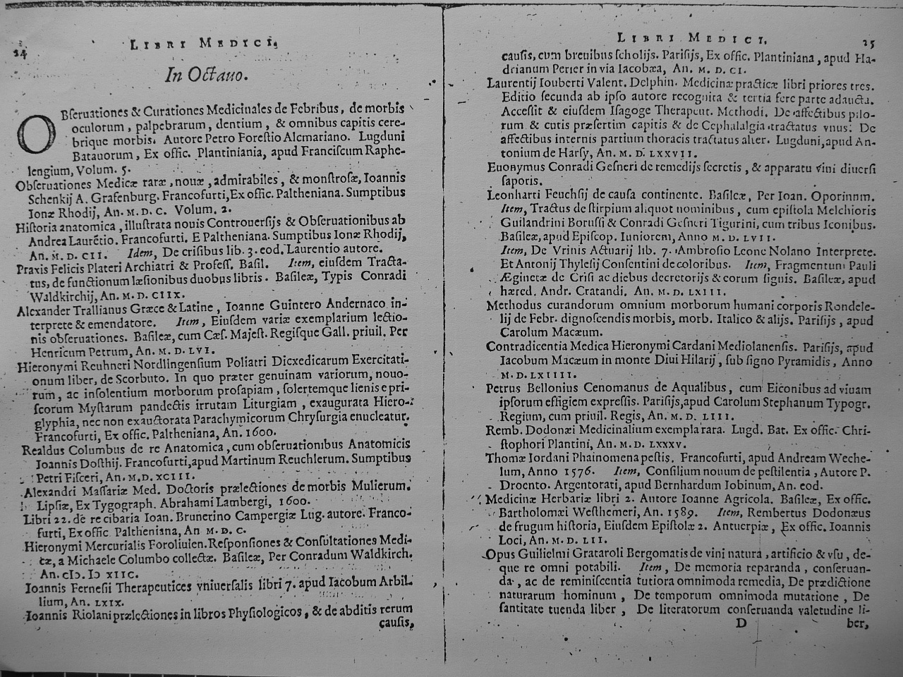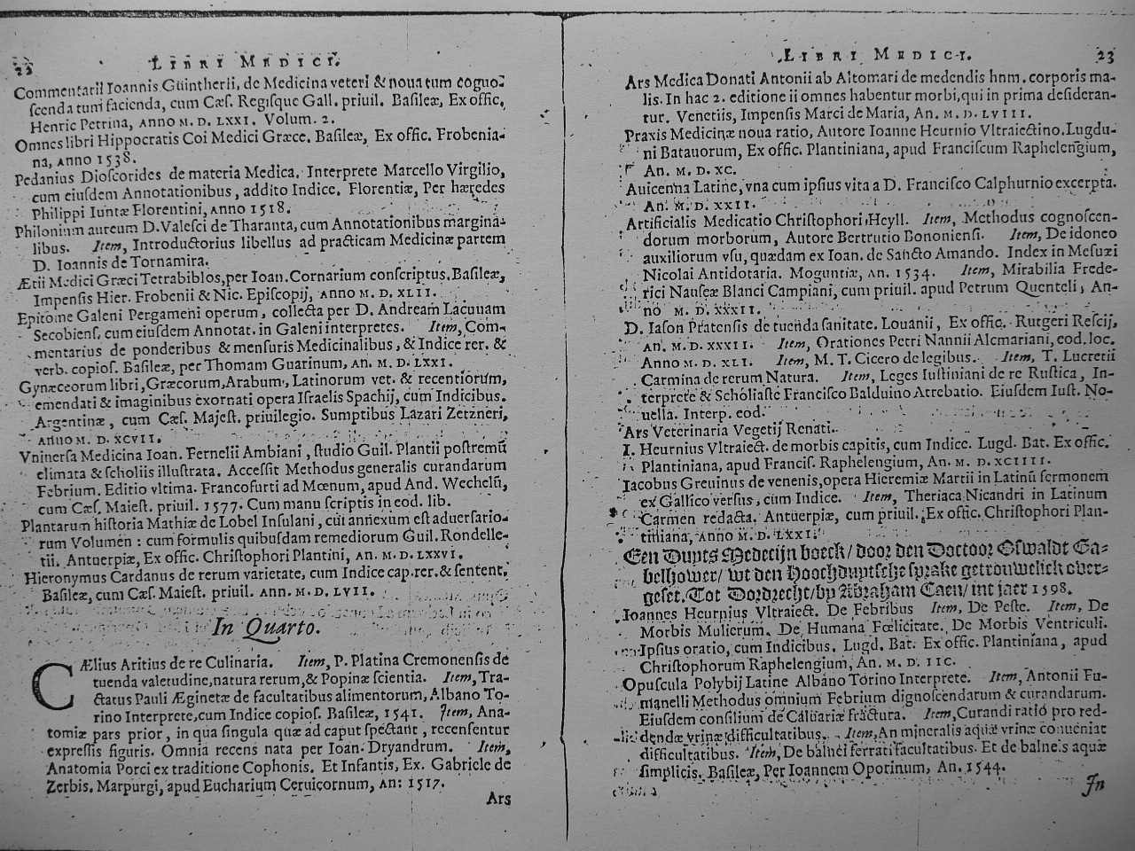 | Libri theologici in folio > 3 in quarto > 5 in octavo > 6 in decimo sexto > 12 Libri iuridici in folio > 13 in quarto > 14 in octavo > 15 in decimo sexto > 18 Libri politici in quarto > 19 in octavo > 19 in decimo sexto > 20 Libri medici in folio > 21 in quarto > 22 in octavo > 24 in decimo sexto > 28 Libri astronomici, arithmetici, mathematici et geometrici in folio > 28 in quarto > 29 in octavo > 30 |