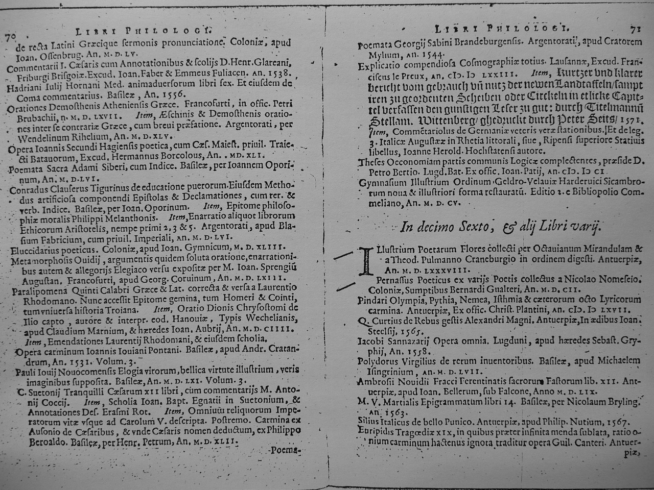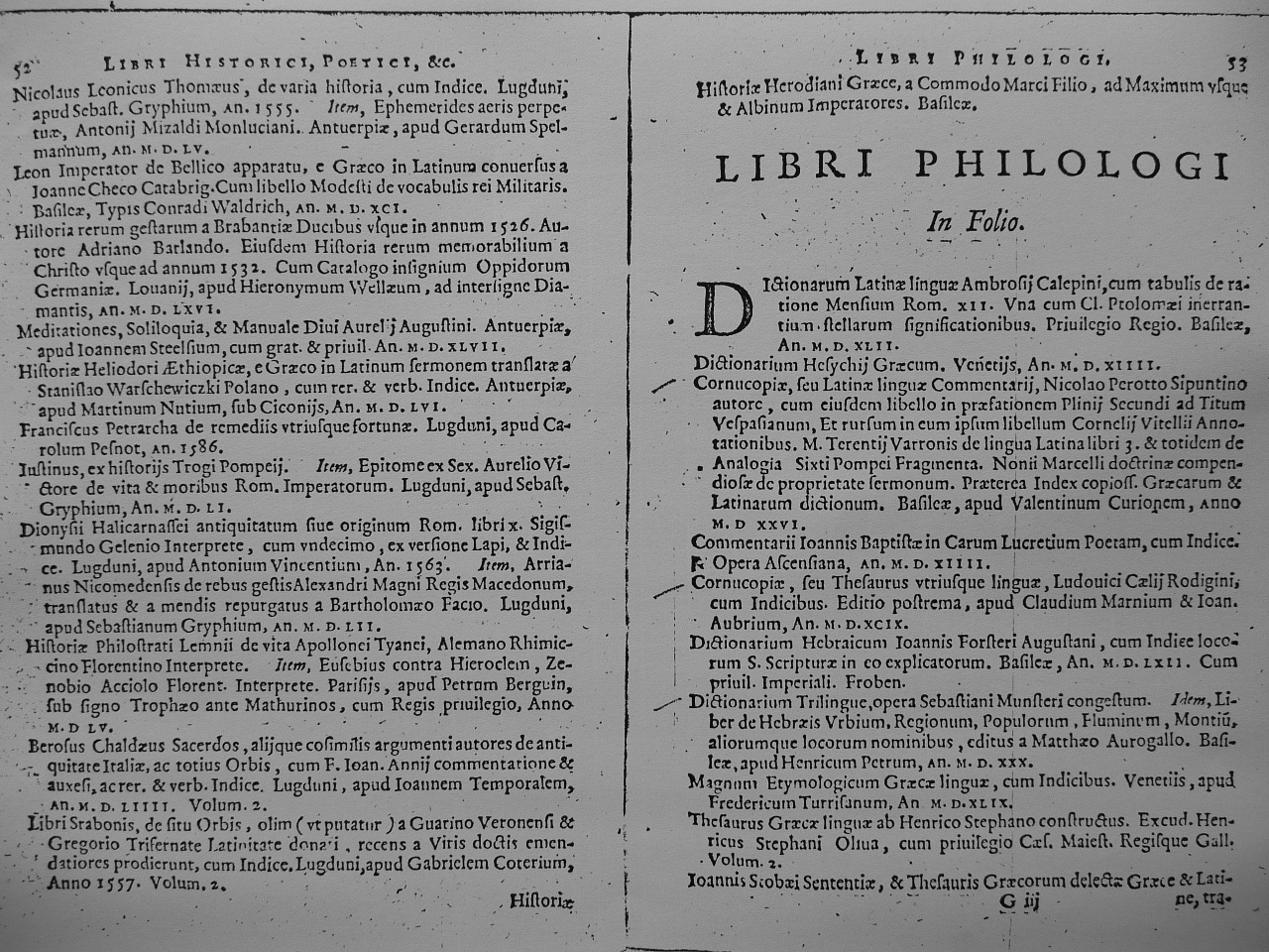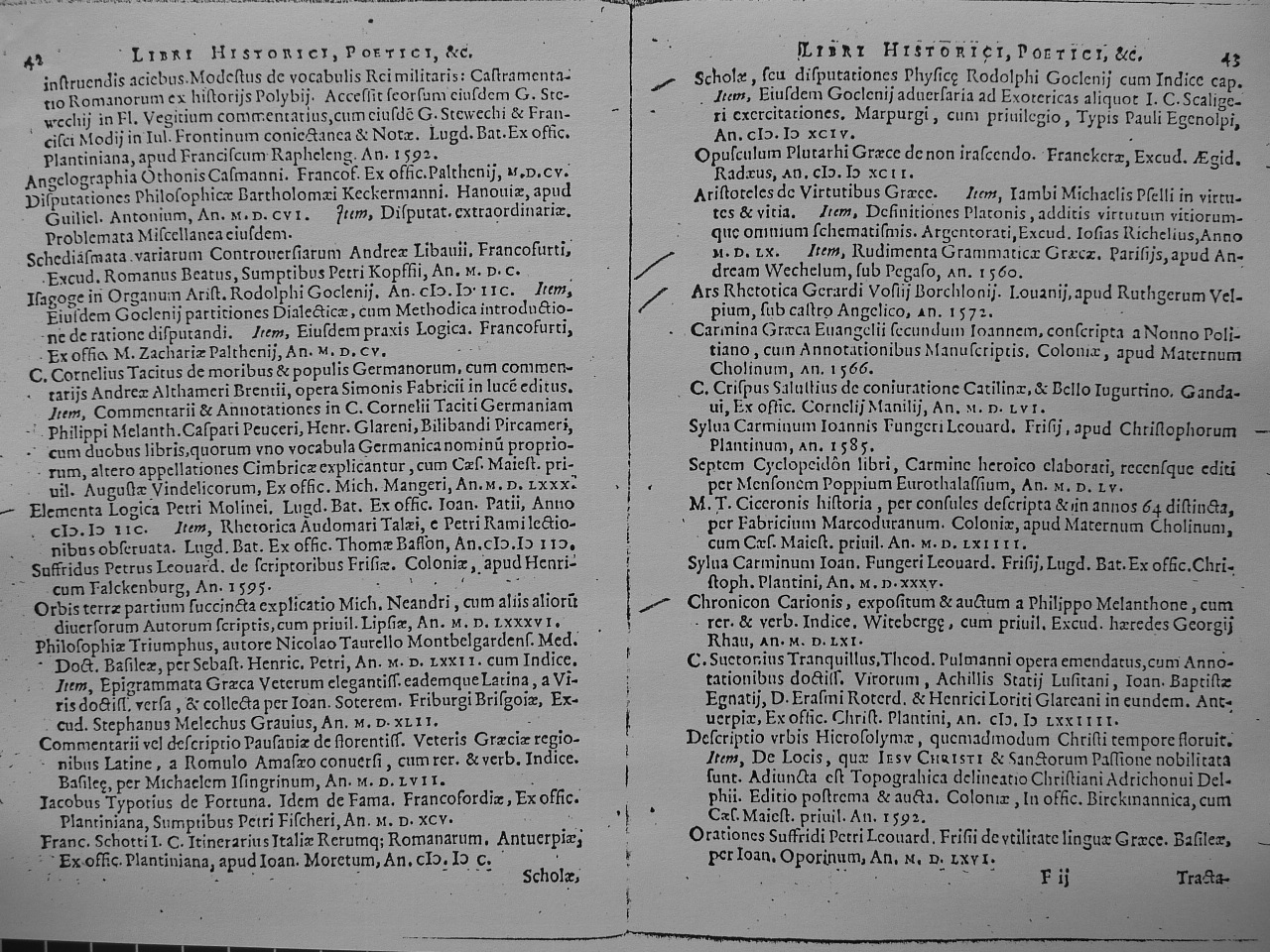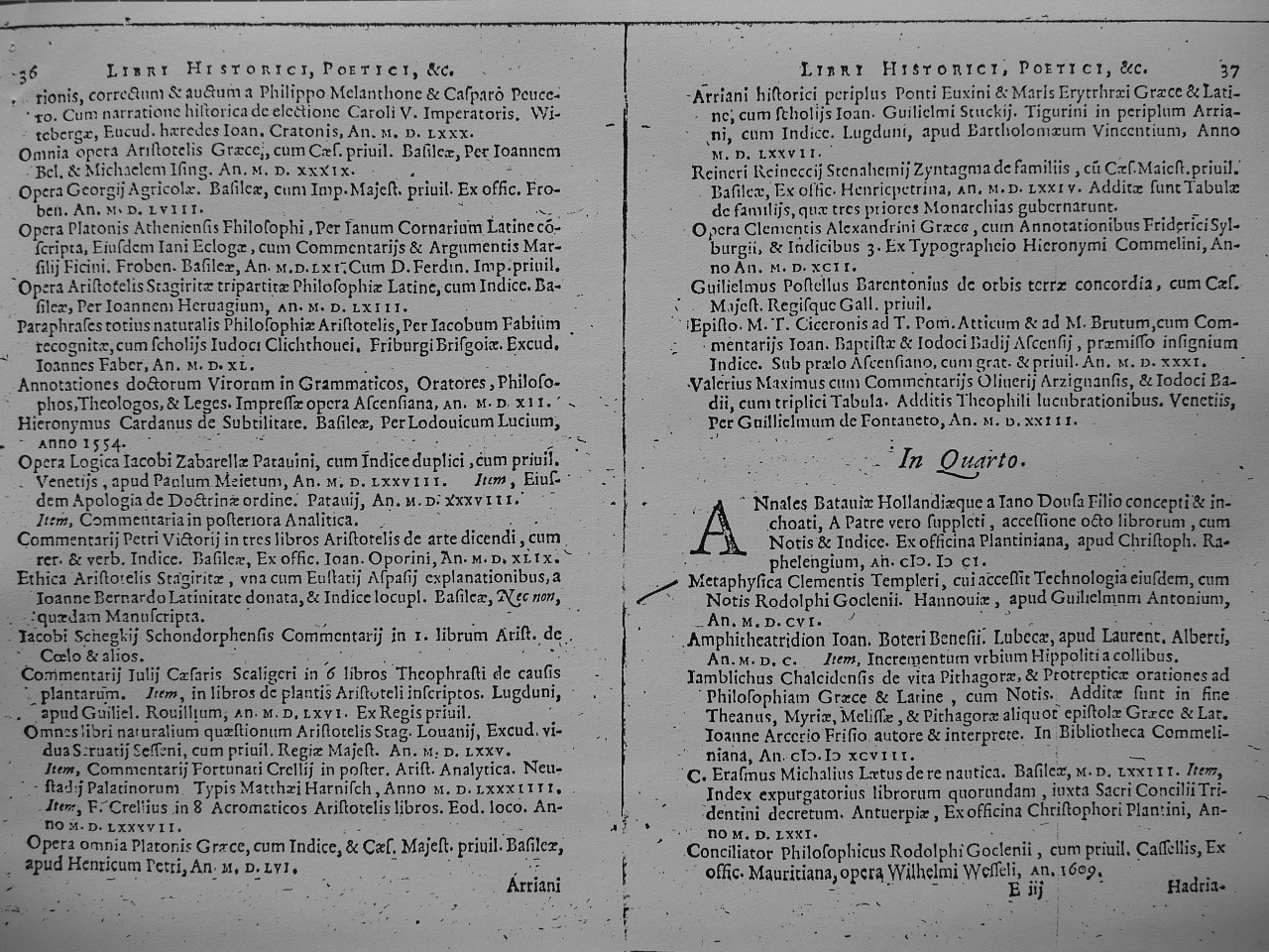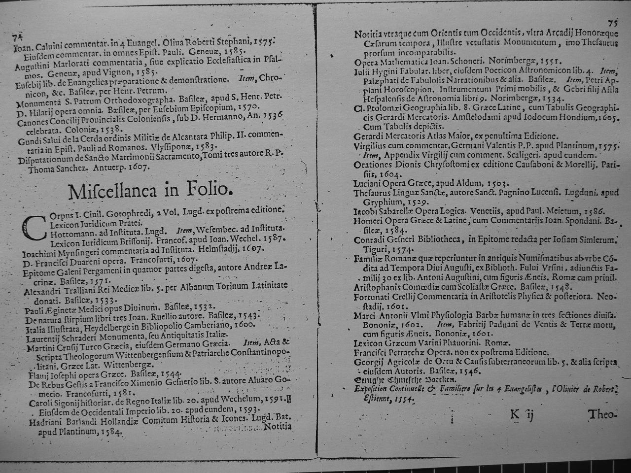 Libri historici, poetici, philosophi et logici in folio > 31 in quarto > 37 in octavo > 41 in decimo sexto > 51 Libri philologi in folio > 53 in quarto, & alii libri varii > 54 in octavo, & alii libri varii > 56 in decimo sexto, & alii libri varii > 71 Sommighe Duytsche boecken > 73 Appendix Theologici in folio > 73 Miscellanea in folio > 74 Theologici in quarto > 76 Miscellanea in quarto > 76 Theologici in octavo > 78 Miscellanea in octavo > 79 In 12 & 16 > 80 |