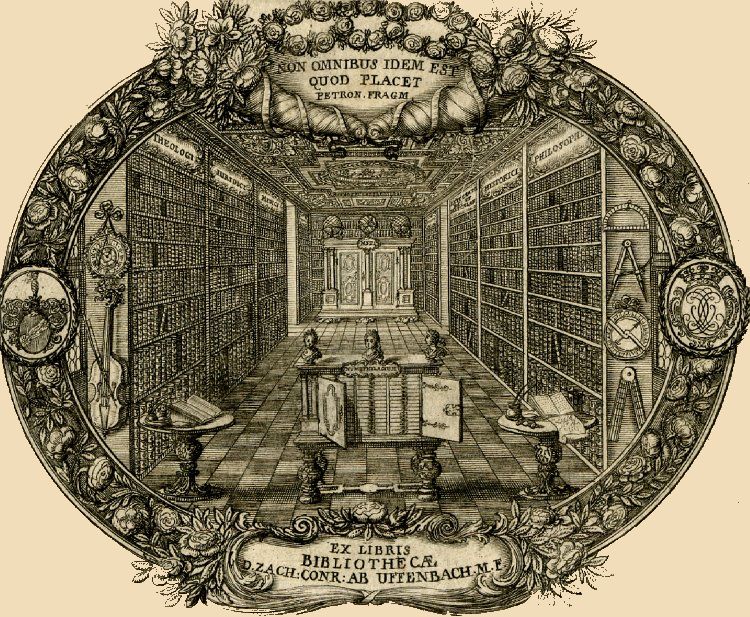 in de naar wetenschappen ingedeelde universiteitsbibliotheek van Franeker bij de