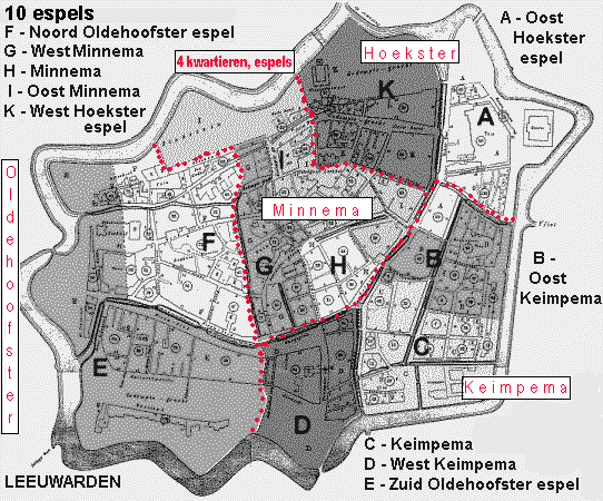 Op 7 augustus 1640 "na noen sijn in plaets van de afgaende voogden gekoren in Hoeksterespel (3): Jan Harmens backer, Symmen Claessen, Jan Harmens snider; Minnema espel (2): Fredrick Hachtinch [er staat: Hachtincs], Jan Pyttersen; Keimpema espel (3+1): Cornelis Hylkens voor een iaer continueerd, nieus gekoren Michiel Rinses, Dr. Atsma, Lambertus van Dalen als administrator; Oldehoofster espel (3): Tiaerd Rutgers, Tonis Claessen brouwer, Tierck Jurriens; op het Fliet (2): Jan Jansen pottebacker, Pyter Attes scuittevoerder"; magistraatsresolutieboek fol. 131 recto. De aantallen waren gehalveerd. Het Vliet was nieuw.