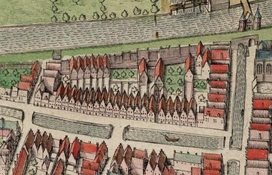 Uit: Eekhoff I, 176. - Het Zoete naam Jezus gilde bezat 18 woningen aan de stadswal in de "Nieuwe Wereld" achter de Nieuweburen, welke aan ouden en armen ter bewoning waren gegeven. Hierbij was tevens een huis, dat de broederschap tot het houden van bijeenkomsten en het uitreiken van de bedelingen gebruikte, en dat daarom de naam van het Zoete-naam-Jezus-gildehuis droeg.