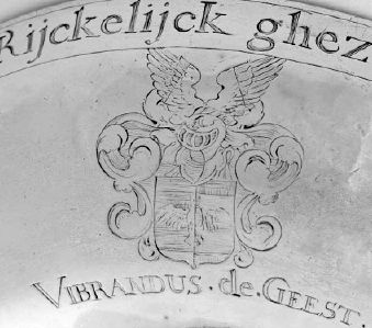 Een zilveren collecteschaal uit 1639 in het Fries Museum draagt - naast een bijbelcitaat over de armen - de vier wapens en namen van Pier Upts [Hansma, (laken?)koopman, vaandrager, later hopman]; Douwe Seerps Ansma [olieslager]; Wibrandus de Geest [schilder]; Dr. Adrianus Hagius, burgemeester van Leeuwarden. Marlies Stoter, conservator oude kunst, specialist voor zilver, vroeg mij mee te denken over deze vier namen.