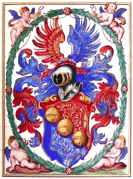 > Wapen van jonkheer Gregorius Schellenberger die in 1657 al zijn goederen vermaakte aan het Zoete naam Jezus-gilde. Dit wapen, hem weleer geschonken door keizer Ferdinand bij acte de dato 12 september 1558, is in in originali in het archief van het gilde voorhanden.