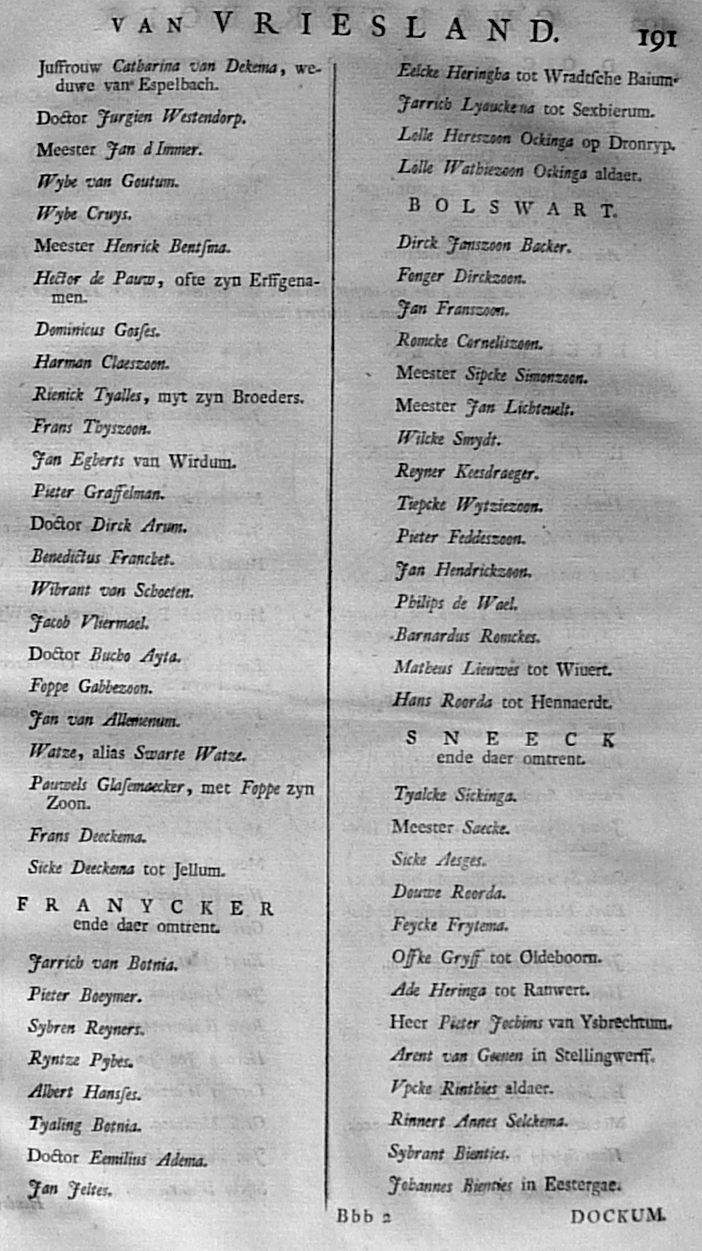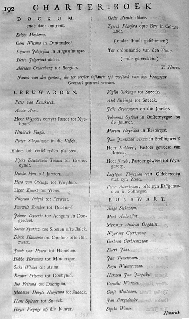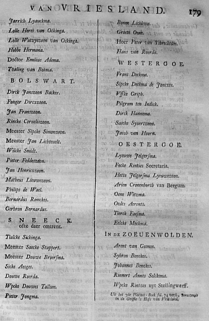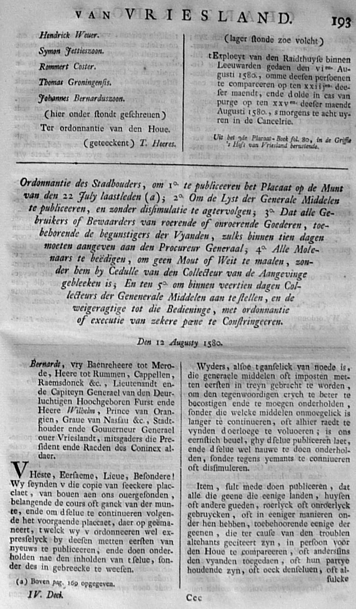 Citatie ... Malcontenten ... om op poene van eeuwig Bannissement en Confiscatie van Goederen, te compareeren op den 27 aanstaande in de Cancellarye binnen Leeuwarden; met een register der Gedaagden