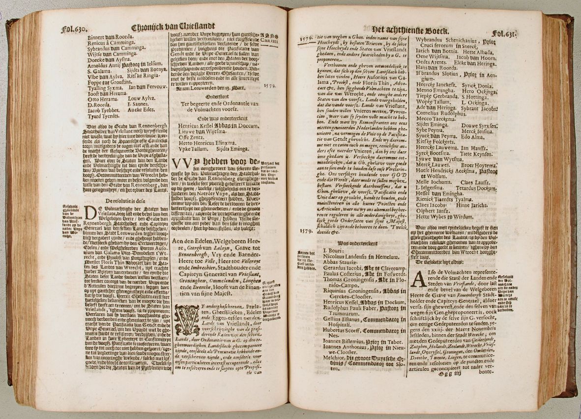 ... de Grave van Rennebergh Stadtholder van Vrieslant noch weyffelende ... vreesende als noch de Spaensche ofte Conincks toorn, mitsgaders de ooghen niet afslaende van de macht der Reformeerde Bondtgenooten, heeft de verteyckinge van de Unye afgheslagen.
