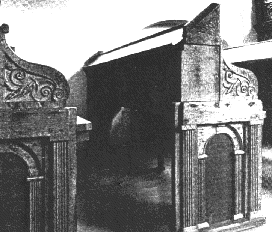 De wandkasten (thecae) hadden van beneden naar boven in hoogte afnemende vakken corresponderend met de opstelling folianten onderaan, daarboven kwartijnen enz.