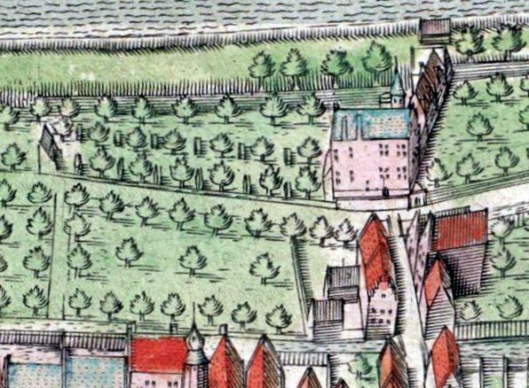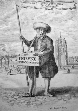 ![]() links de Leeuwarder Doelen in 1603 met ten W de schietbaan van de handboogschutters; aan het uiteinde de kas met de schietschijf, aan weerszijden de bakens van de verschillende schietafstanden, tegen het hoofdgebouw bergruimte rechts een afbeelding van de Amsterdamse handboogdoelen ![]() 1622: Q = Doelen ![]() 1664: Y = Doelen; de schietbaan nu ten N van de gebouwen? Drievuldigheidsdag = festum Trinitatis, zondag na Pinksteren, 14 juni oude stijl. Ongerschen = Ungerschen = Hongaren; in het bijzonder in Friesland Hongaarse reizende dokters, die o.a. jeneverbesolie stookten die gebruikt werd als medicijn, vooral tegen kiespijn. Is de aanwezigheid van "Ongerschen" een verklaring voor het onstaan van de brand in 1584? Met andere woorden is er een ongeluk gebeurd bij het destilleren? Lit.: H. Nijboer, Een rekening betreffende de bouw van de schuttersdoelen in 1540. In: Fontes Leovardienses (Leeuwarder Historische Reeks VII, 2002), 185-202; blz. 187 detail kaart Caspar de Robles ca. 1572. ![]() ![]() Windhoos?56v1599 ontrent drie uren nach middach den 18. Juli is een seer scricklicke ende wrede geweest van bovenmaten harden wynt, donder, blixem ende regen, dat het meer scheen een artbevinge als een onweder te sin ende heeft ontrent een half ure geduurt. Dese wyndt dede overdadige grote schade aen huysen, schueren ende onder hooybergen. Den hooy oppen dijc opt velt stonde woven[?] op somige platsen soe heel vech, dat men nadat het onweder gestilt was, naulix een strohallemen conste vinden. Dese donder heeft vel schade an beesten gedaen, soe dat de gemene huysman dese groete ende mercklicke plage Goedts sampt den burgerie in alle steden daar se geweest is wel beclagen mach. >> begin Op de pagina over Johannes van Glinstra is het hier links afgebeelde portret ook ter sprake gebracht. Daar is aan toe te voegen dat de Oldehove op de achtergrond erop zou kunnen duiden dat het voorgestelde misschien ook gelokaliseerd zou kunnen worden in de Prinsentuin te Leeuwarden met het Doelengebouw links, en rechts op de achtergrond de Oldehove, het waarmerk van de stad. De verhoudingen zijn waarschijnlijk niet exact: vergelijk de tekening van een almanakventer op het plein (Oldehoofsterkerkhof).