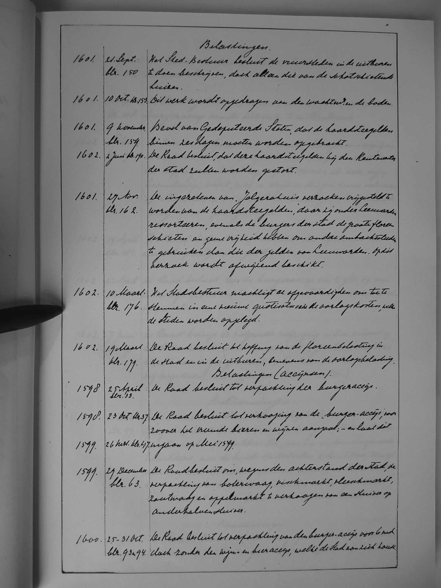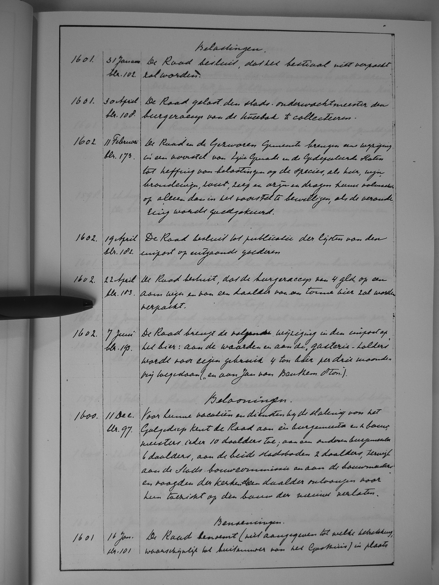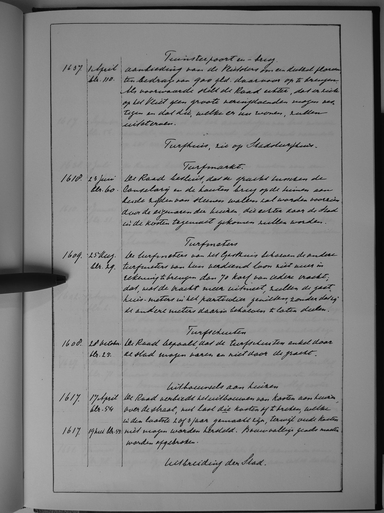 26 verkopingen, ordonnantie op; Verlaat; verpachting der imposten; verpachting van het Stads-Tolhuis; verpachtingen; Vismarkt; Vleesmarkt; Vliet, het