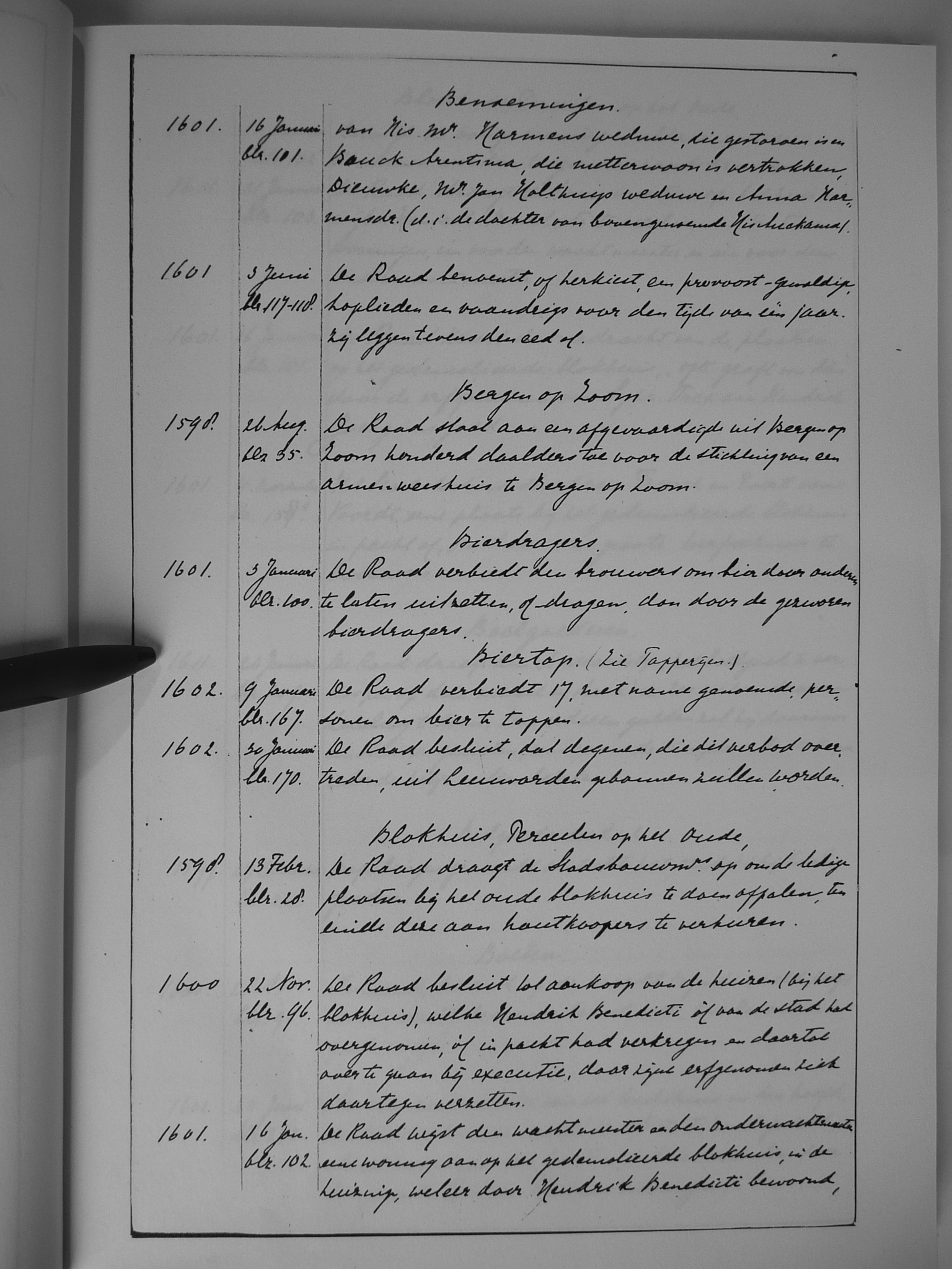 07 benoemingen; Bergen op Zoom; bierdragers; biertap (zie ook; tapperijen); Blokhuis, percelen op het Oude