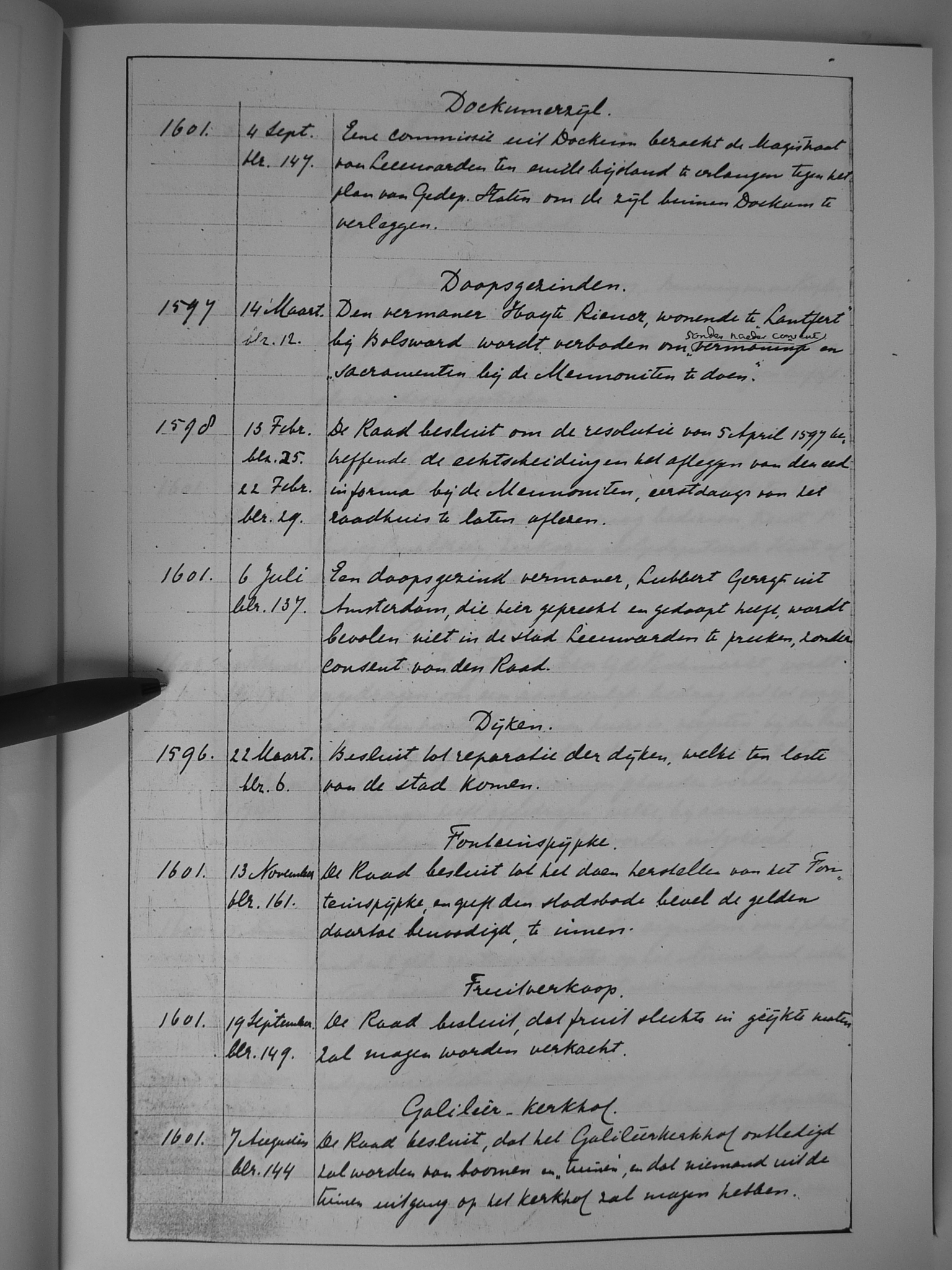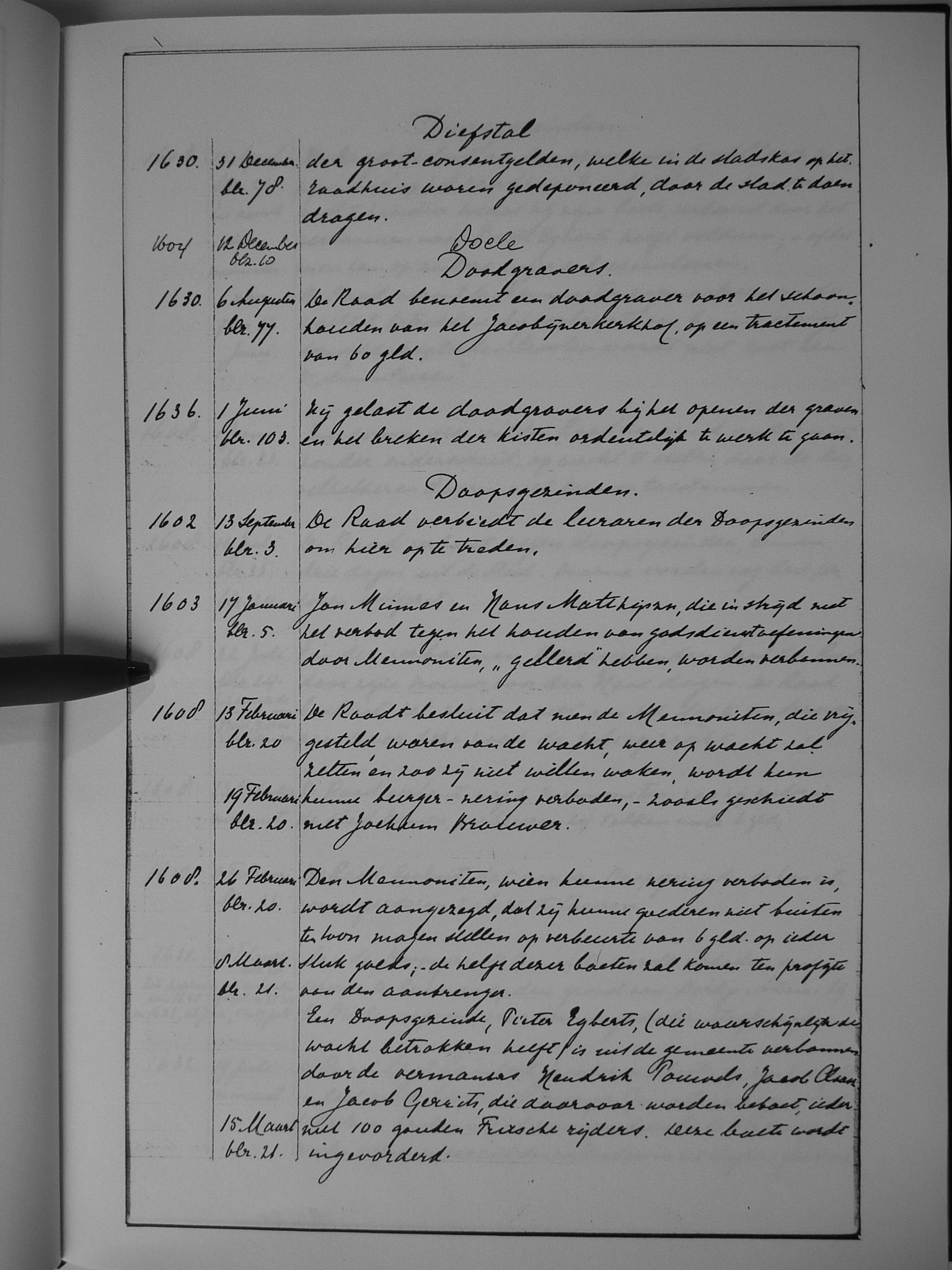 16 diefstal; Doele; doodgravers; Doopsgezinden