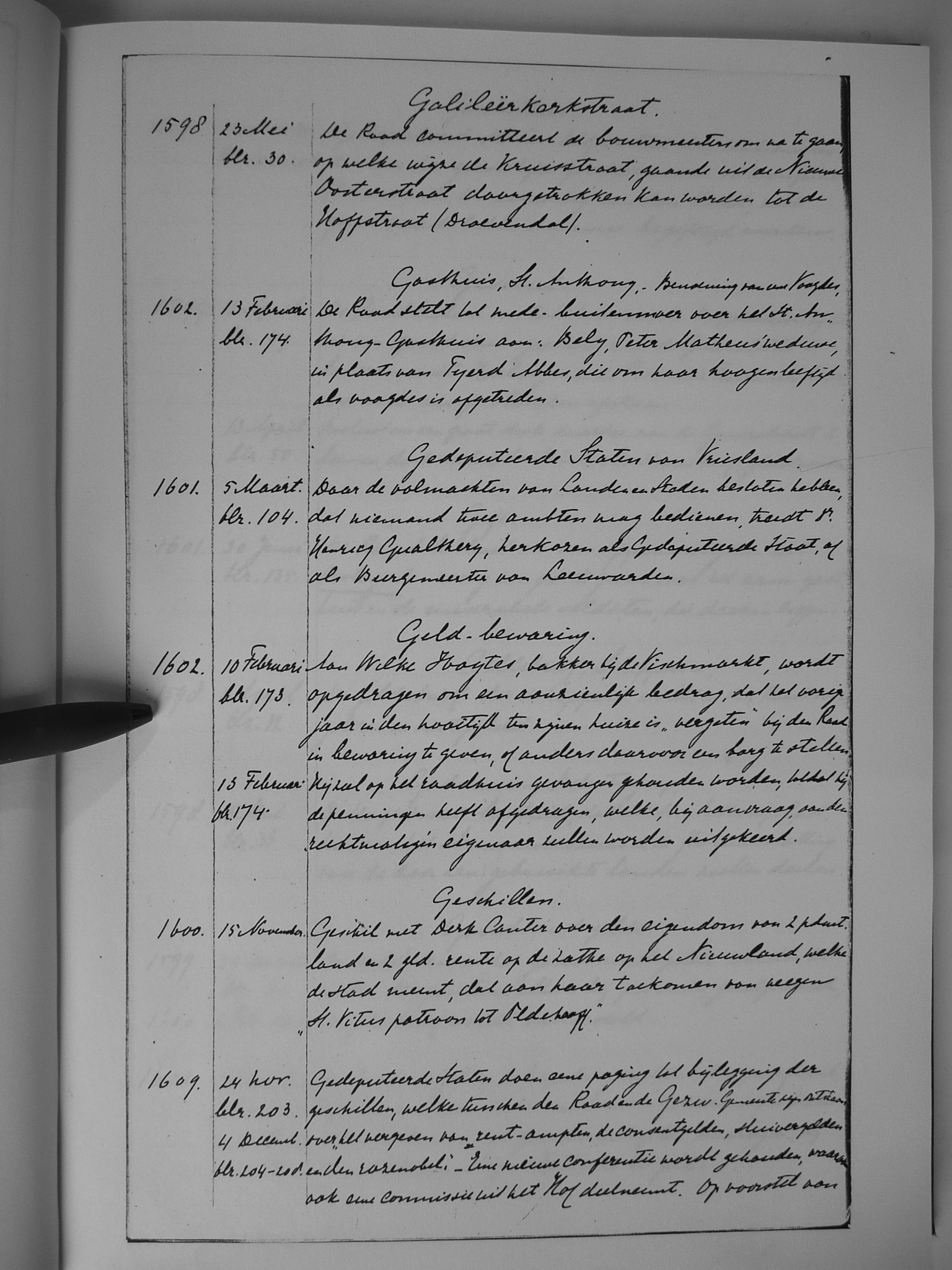 11 Galileërkerkstraat; Gasthuis, St. Anthony, benoeming van voogden; Gedeputeerde Staten van Vriesland; geld-bewaring; geschillen