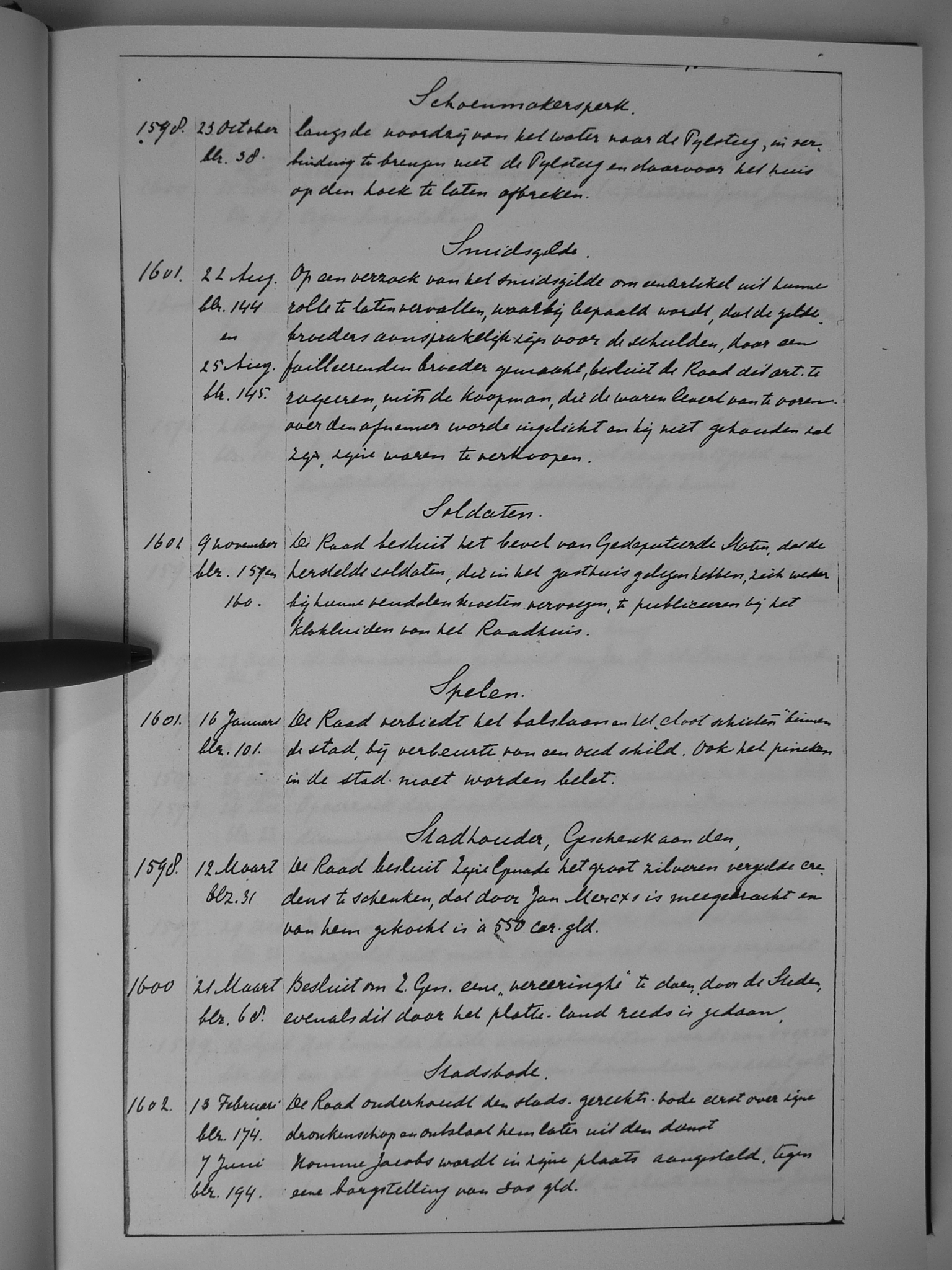 20 Schoenmakersperk; smidsgilde; soldaten; spelen; Stadhouder, geschenk aan den; stadsbode