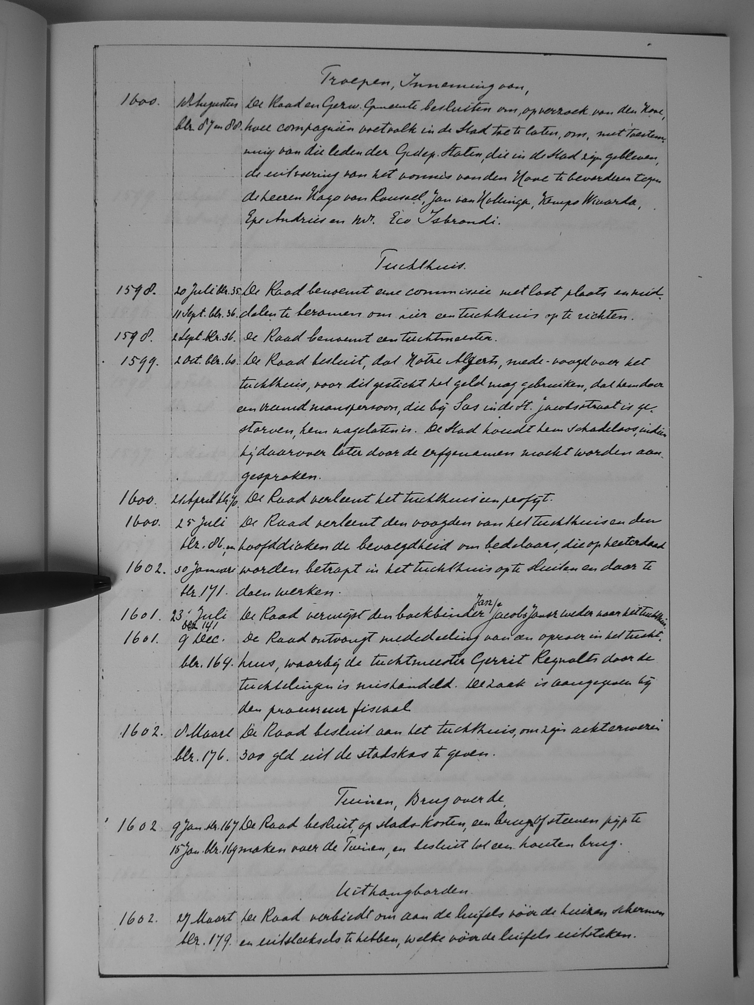 23 troepen, inneming van; tuchthuis; Tuinen, brug over de; uithangborden