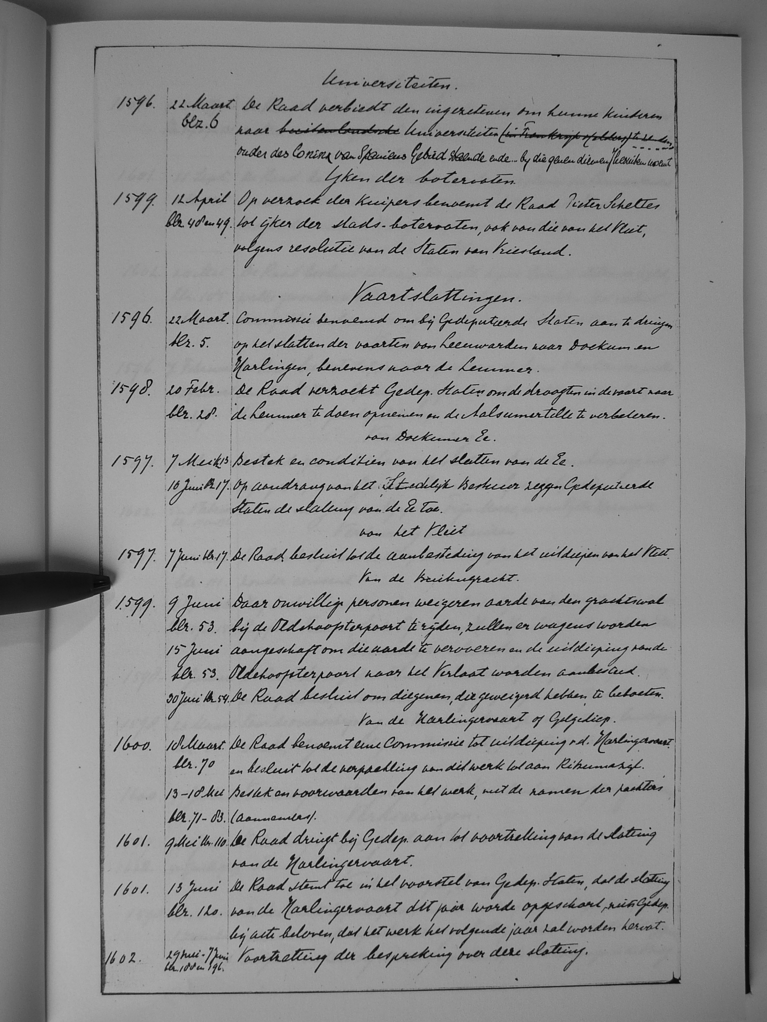 24 universiteiten; ijken der botervaten; vaartslattingen; vaartslattingen (Dokkumer Ee); vaartslattingen (Vliet); vaartslattingen (buitengracht); vaartslattingen (Harlingervaart of Galgediep)