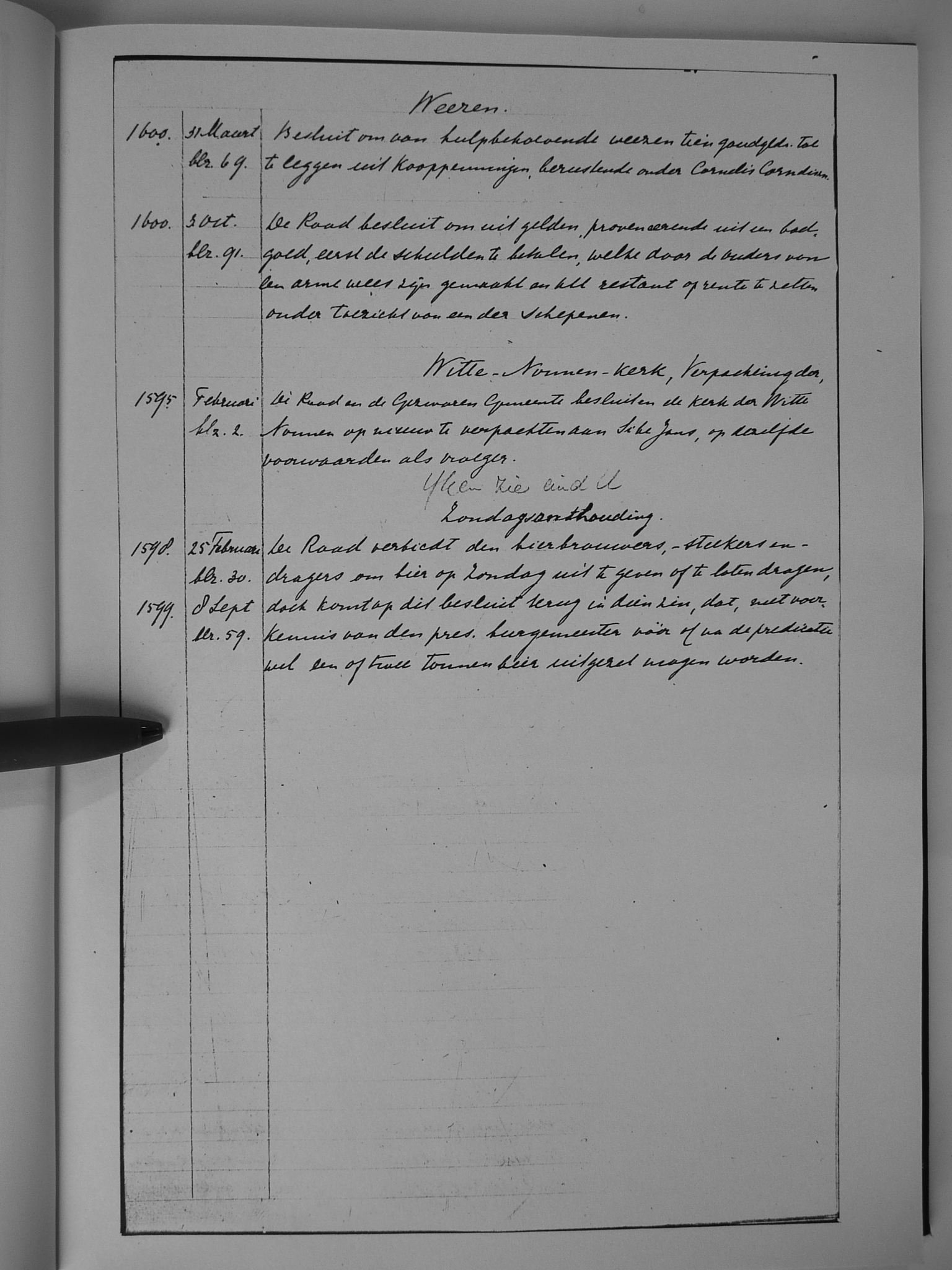 28 wezen; Witte-Nonnen-kerk, verpachting der; ijken, zie tussen U en V (24); zondagsonthouding