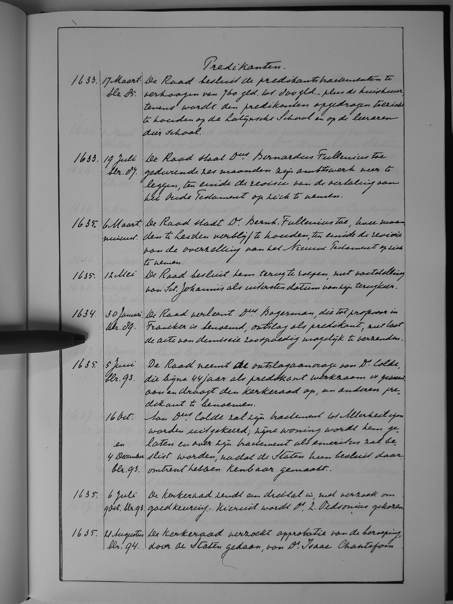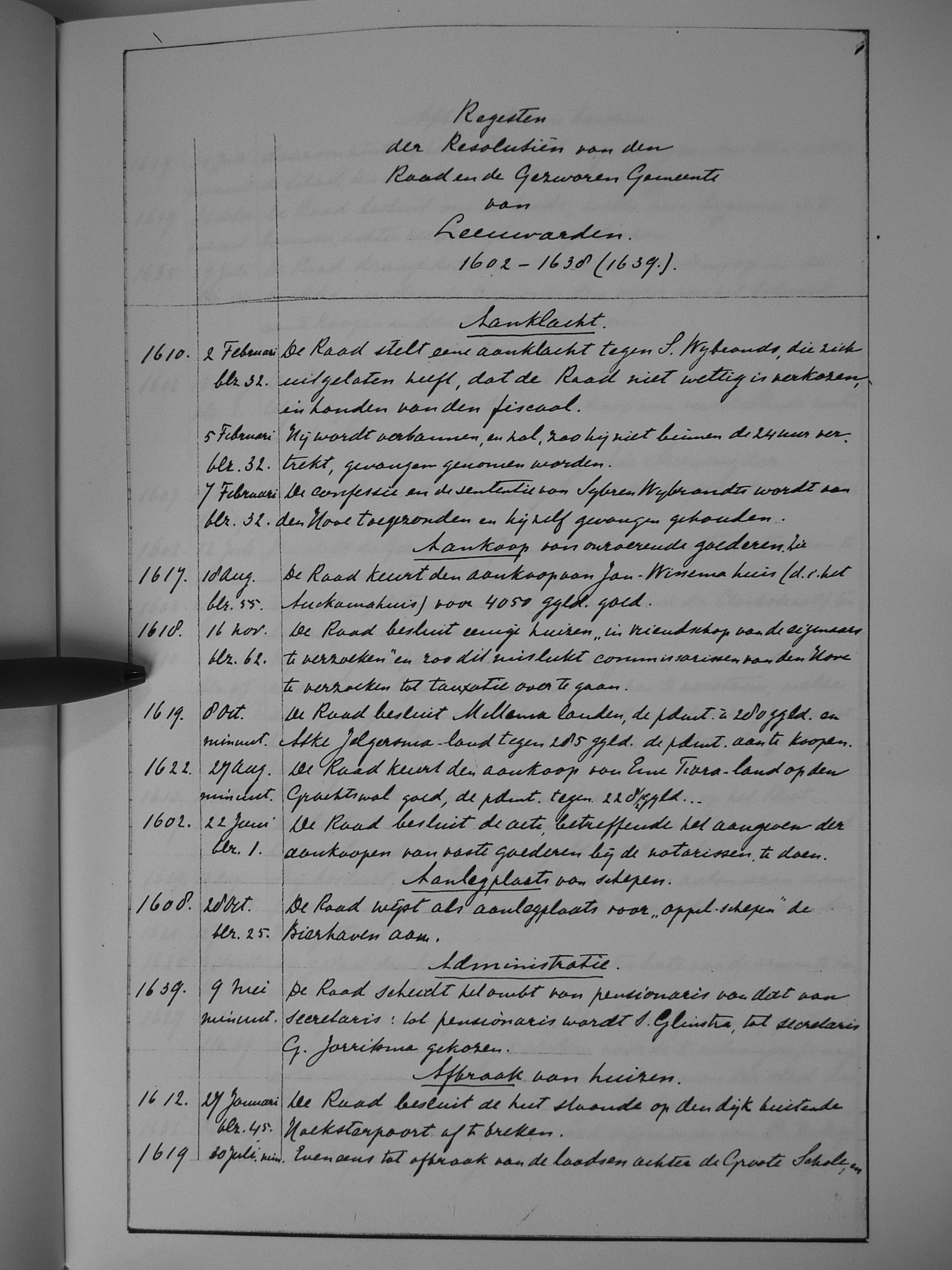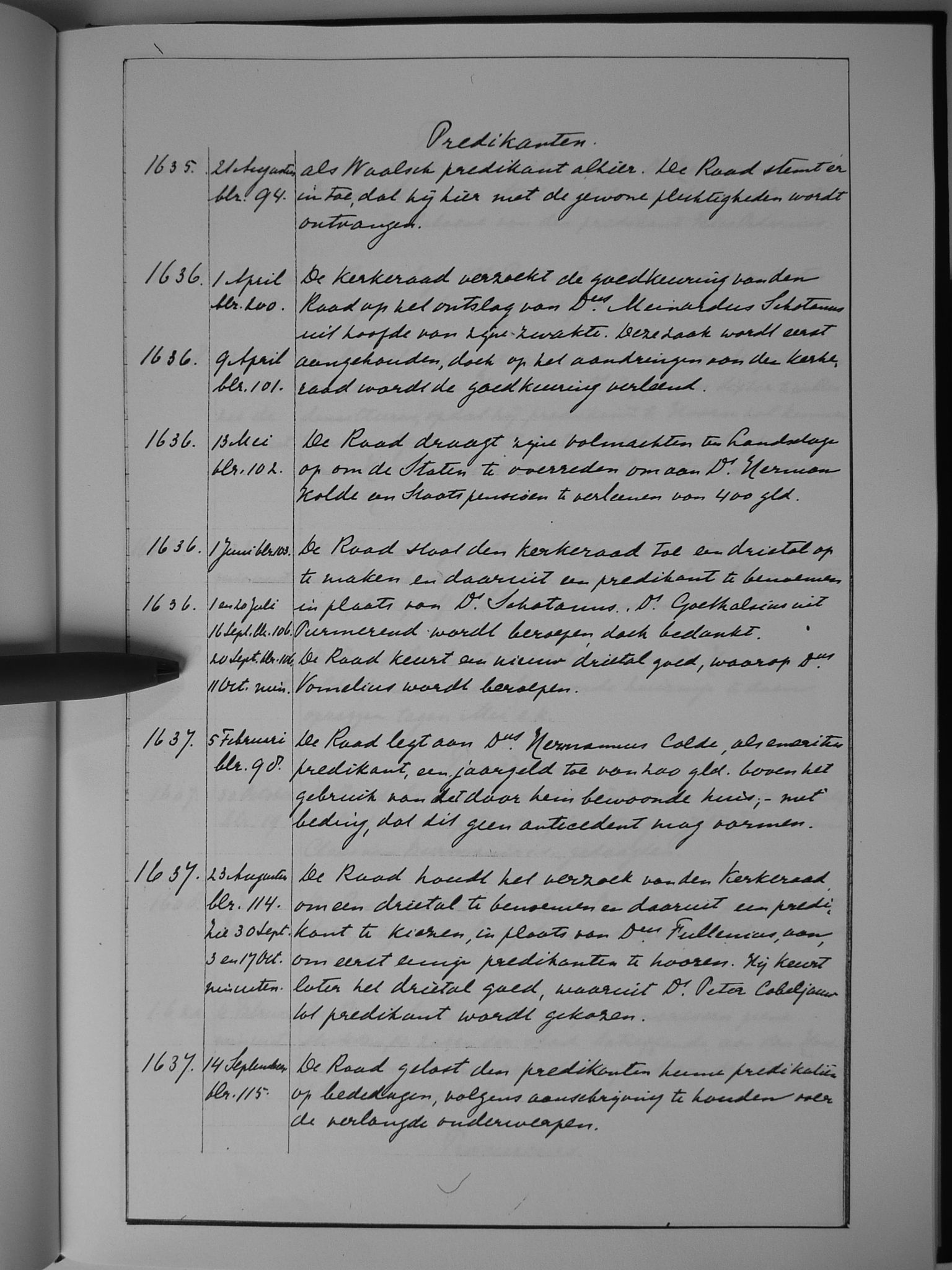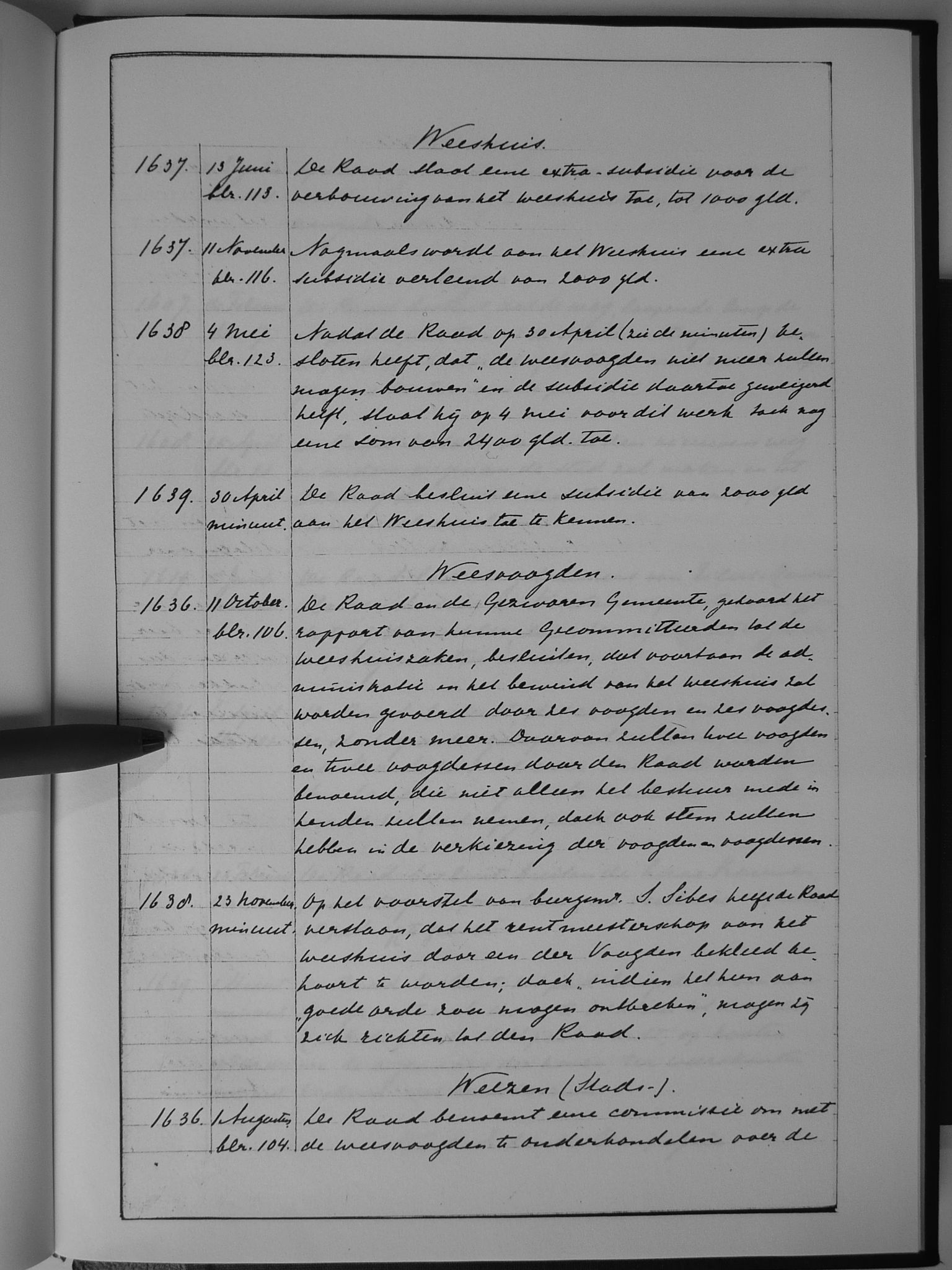Van 1636 tot 1641 is het oorspronkelijke resolutieboek bewaard gebleven.
