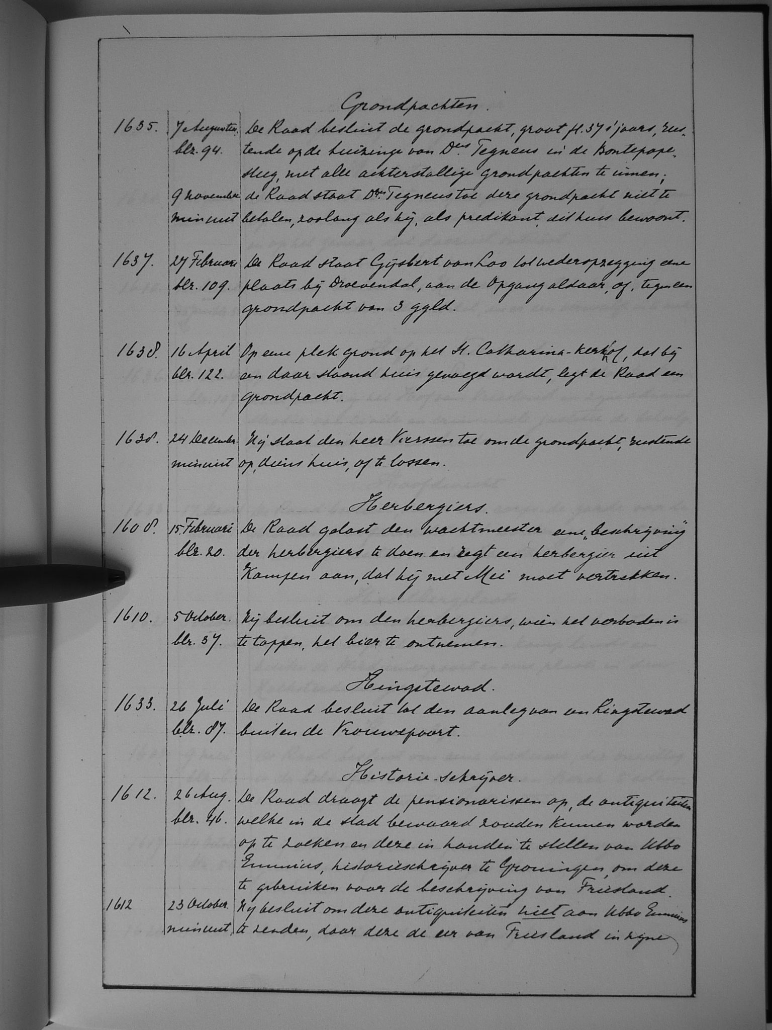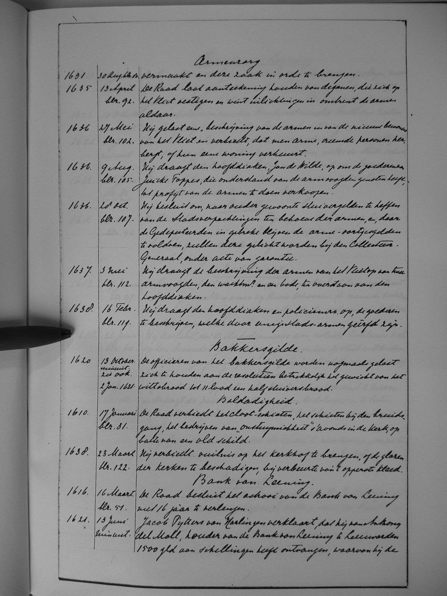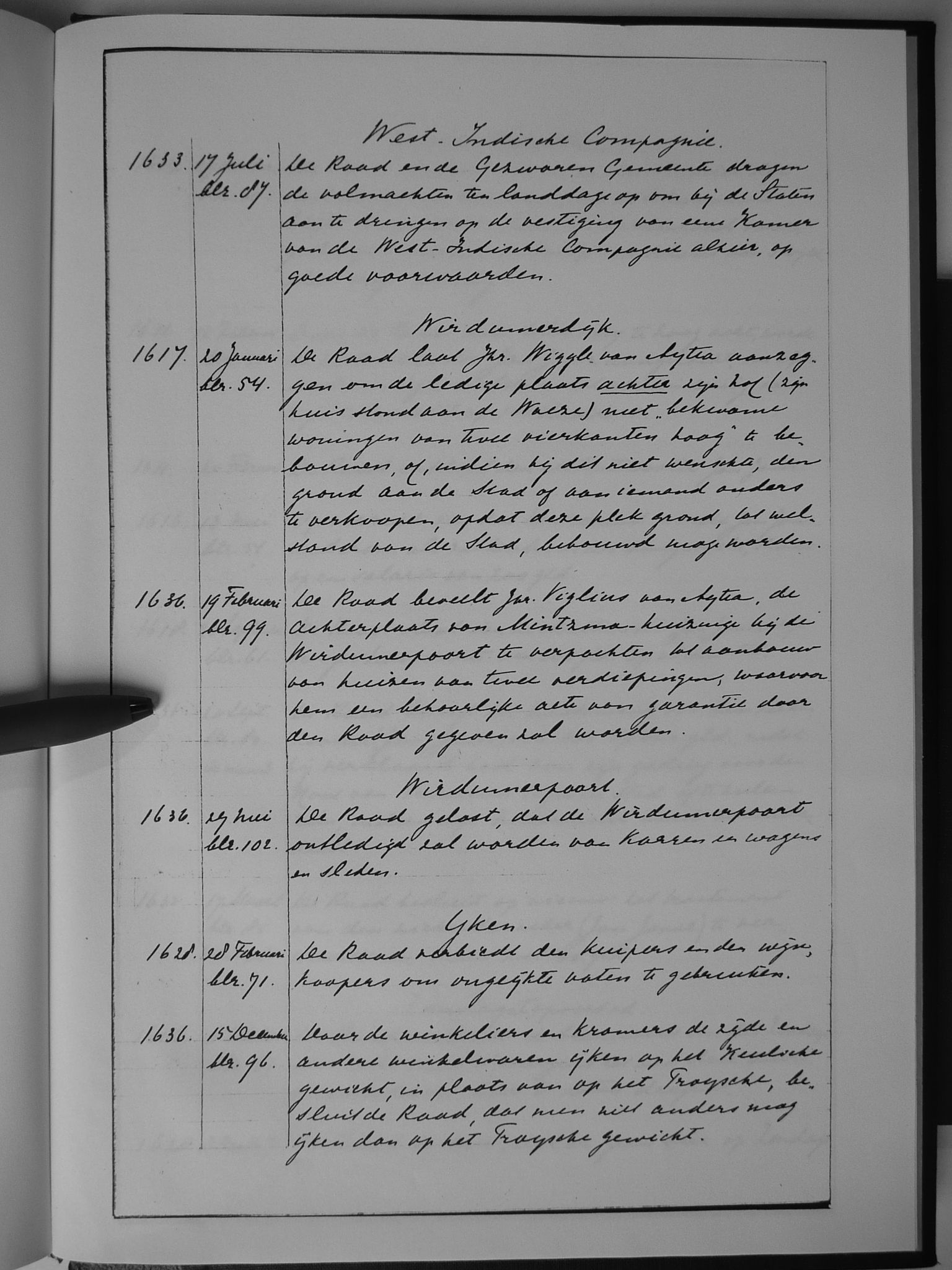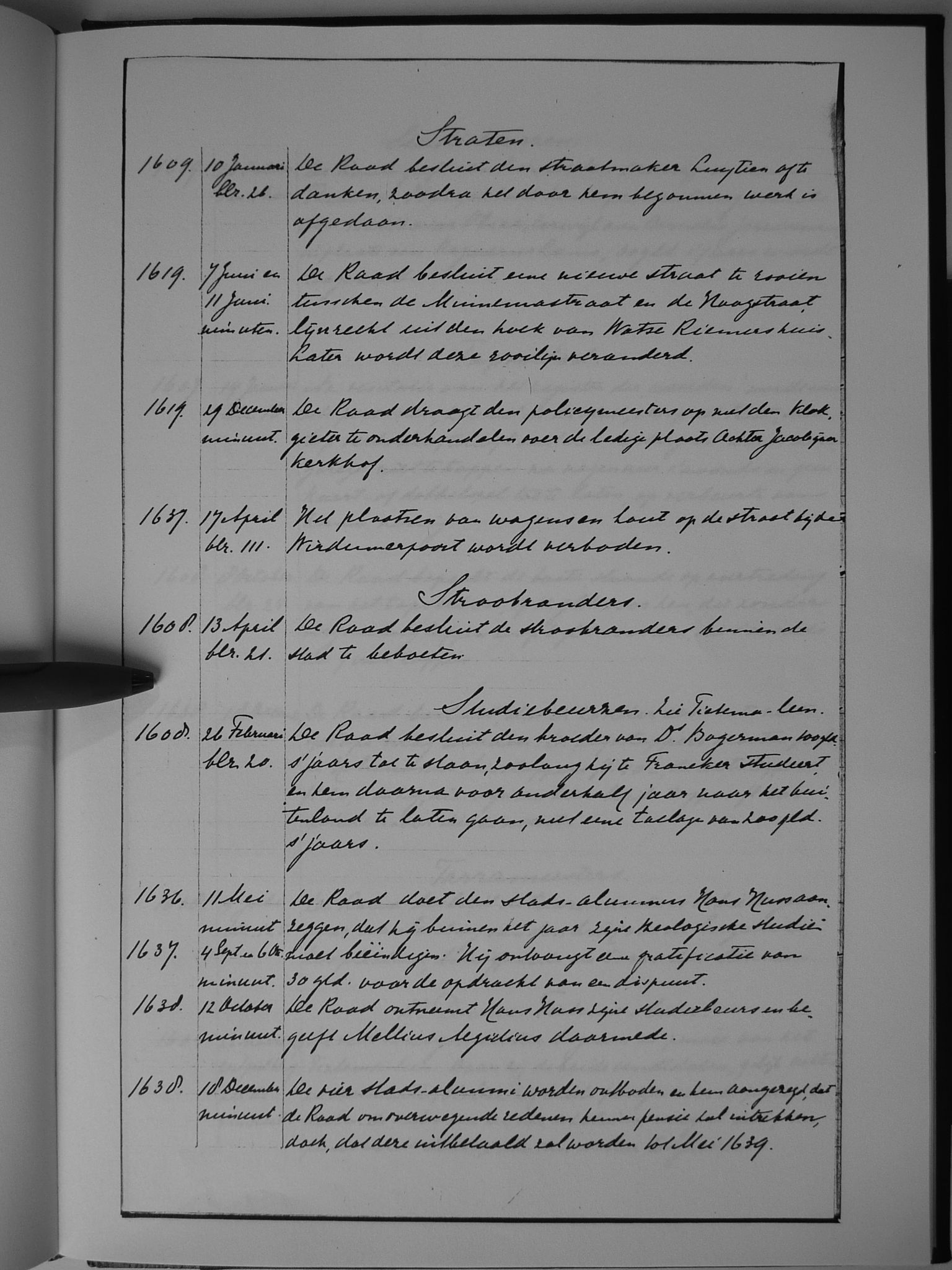 Van 1636 tot 1641 is het oorspronkelijke resolutieboek bewaard gebleven.