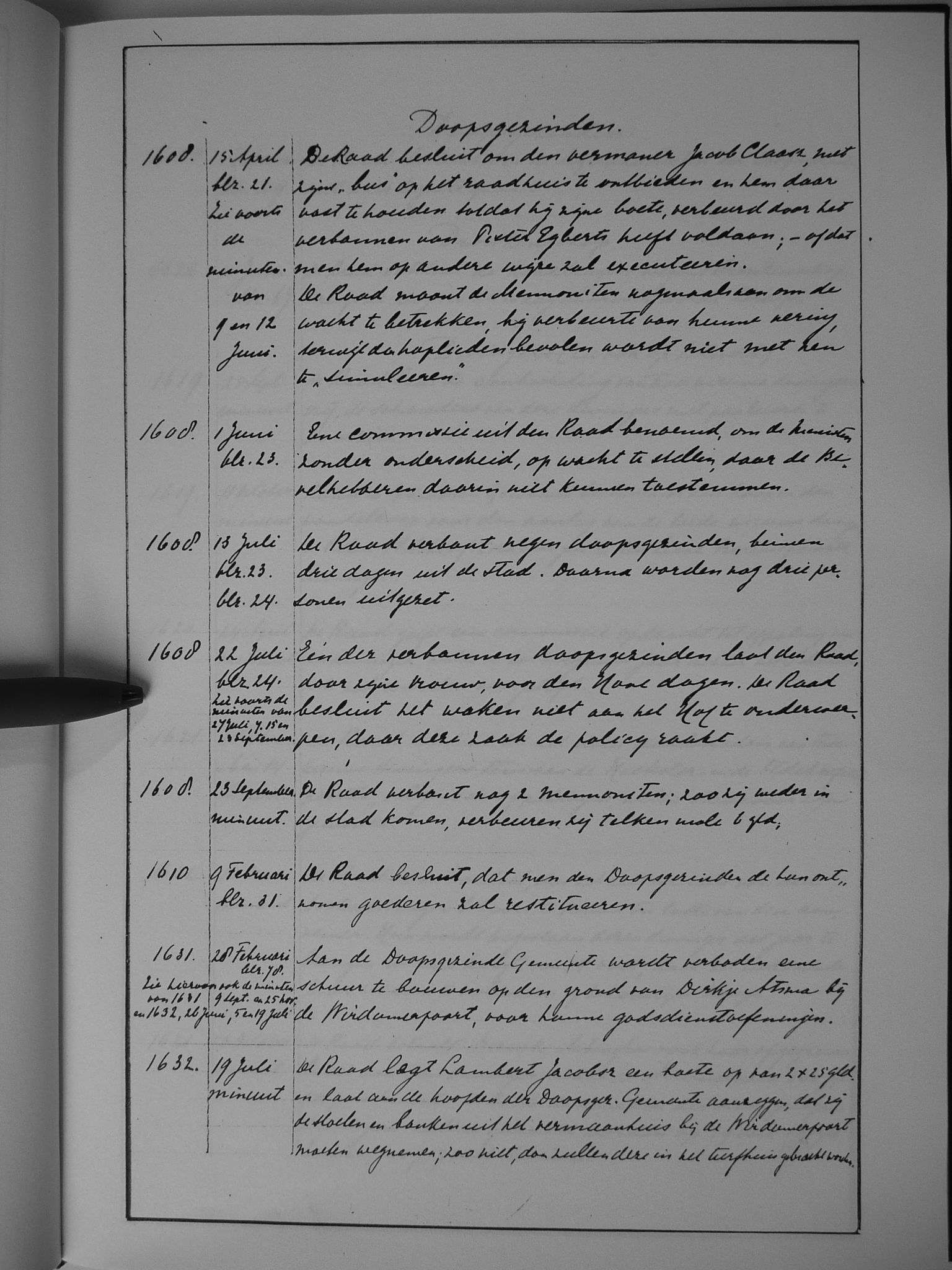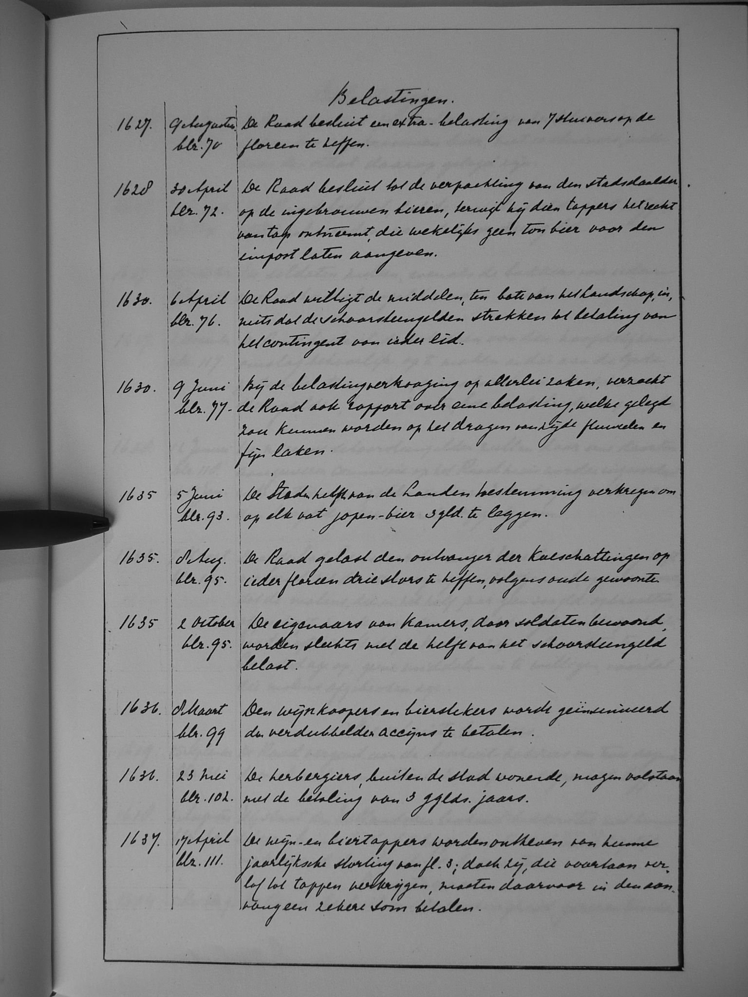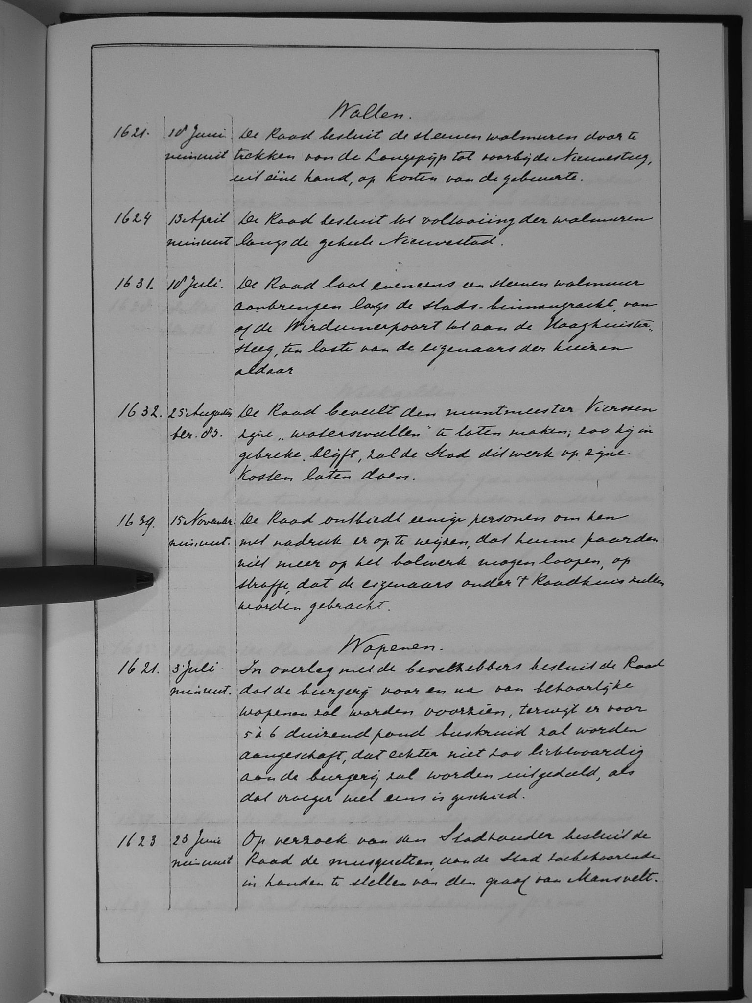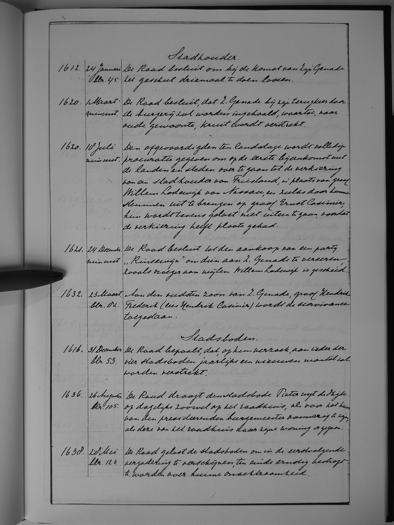 Van 1636 tot 1641 is het oorspronkelijke resolutieboek bewaard gebleven.