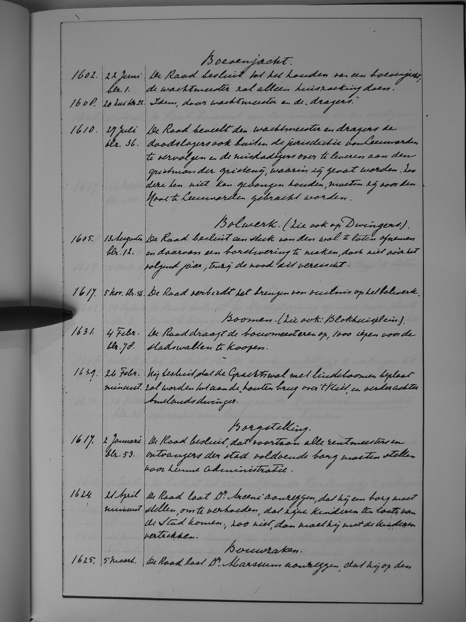 11 boevenjacht; bolwerk (zie ook: dwingers); bomen (zie ook: Blokhuisplein); borgstelling; bouwzaken