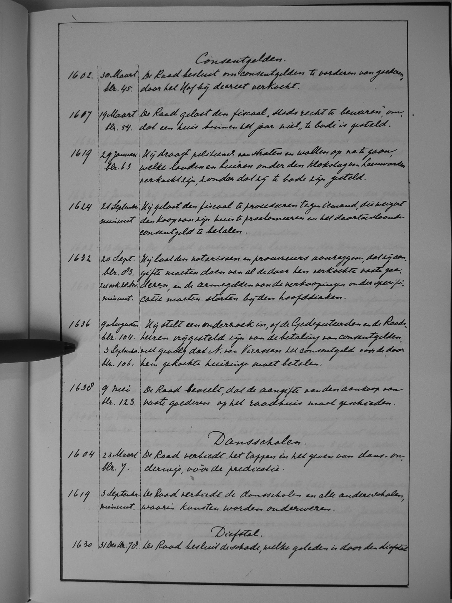 15 consentgelden; dansscholen; diefstal