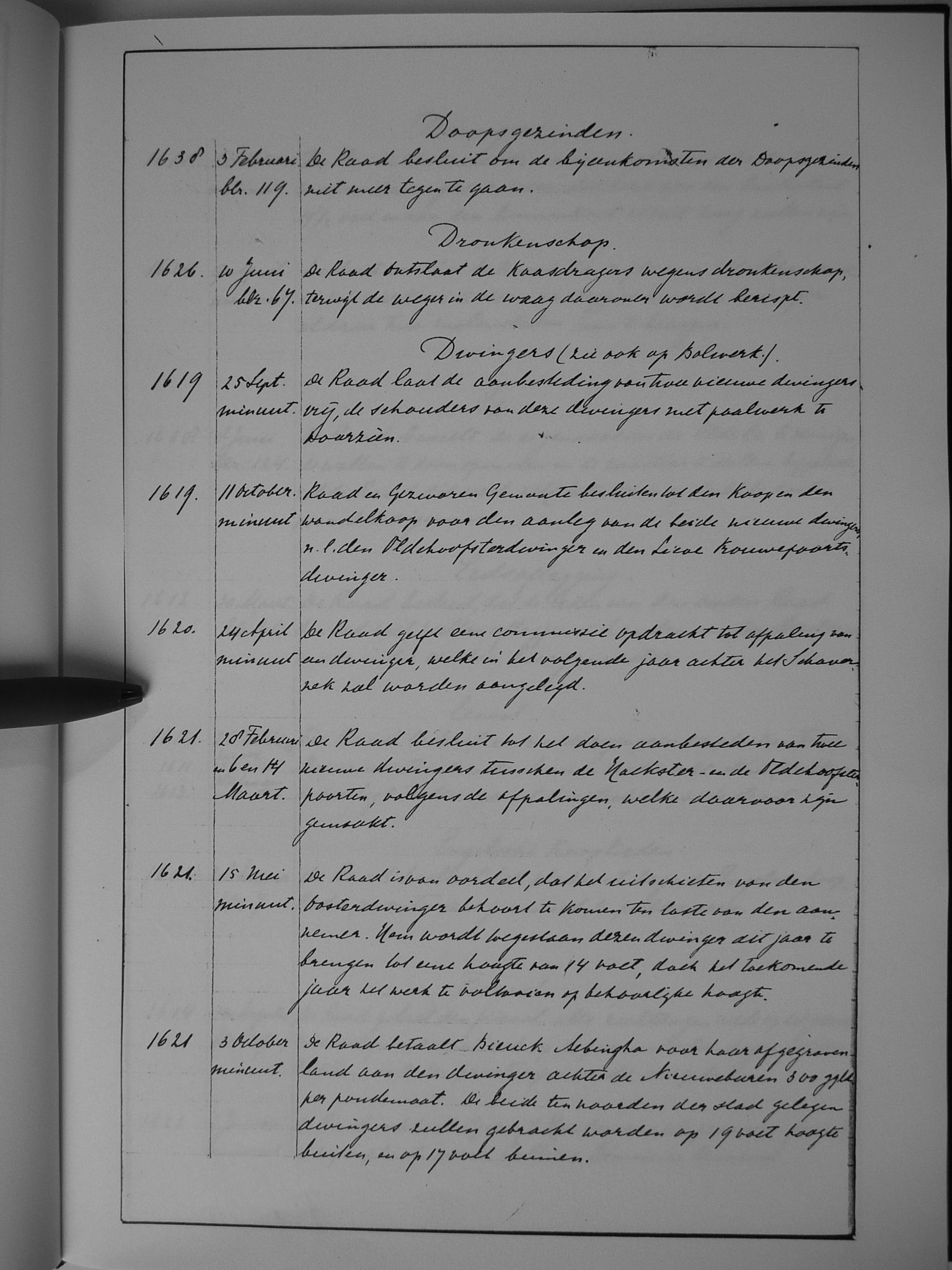 18 Doopsgzeinden; dronkenschap; dwingers (zie ook: bolwerk)