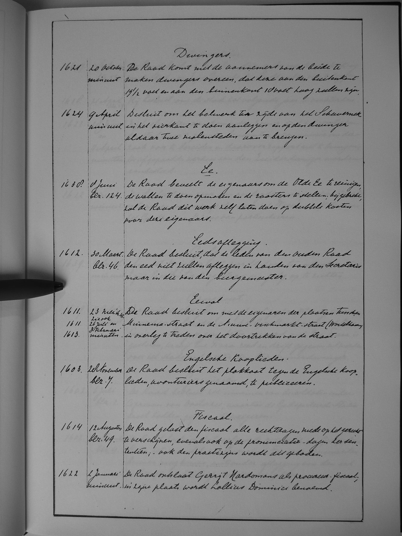 19 dwingers; Ee; eedsaflegging; Eewal; Engelse kooplieden; fiscaal