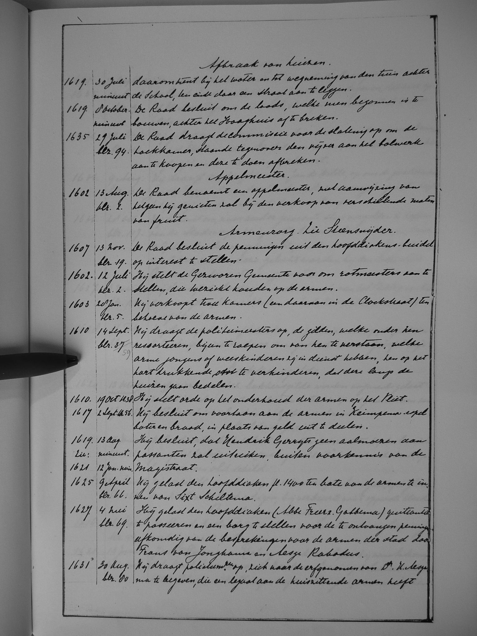 02 afbraak van huizen; appelmeester; armenzorg (zie ook: steensnijder)