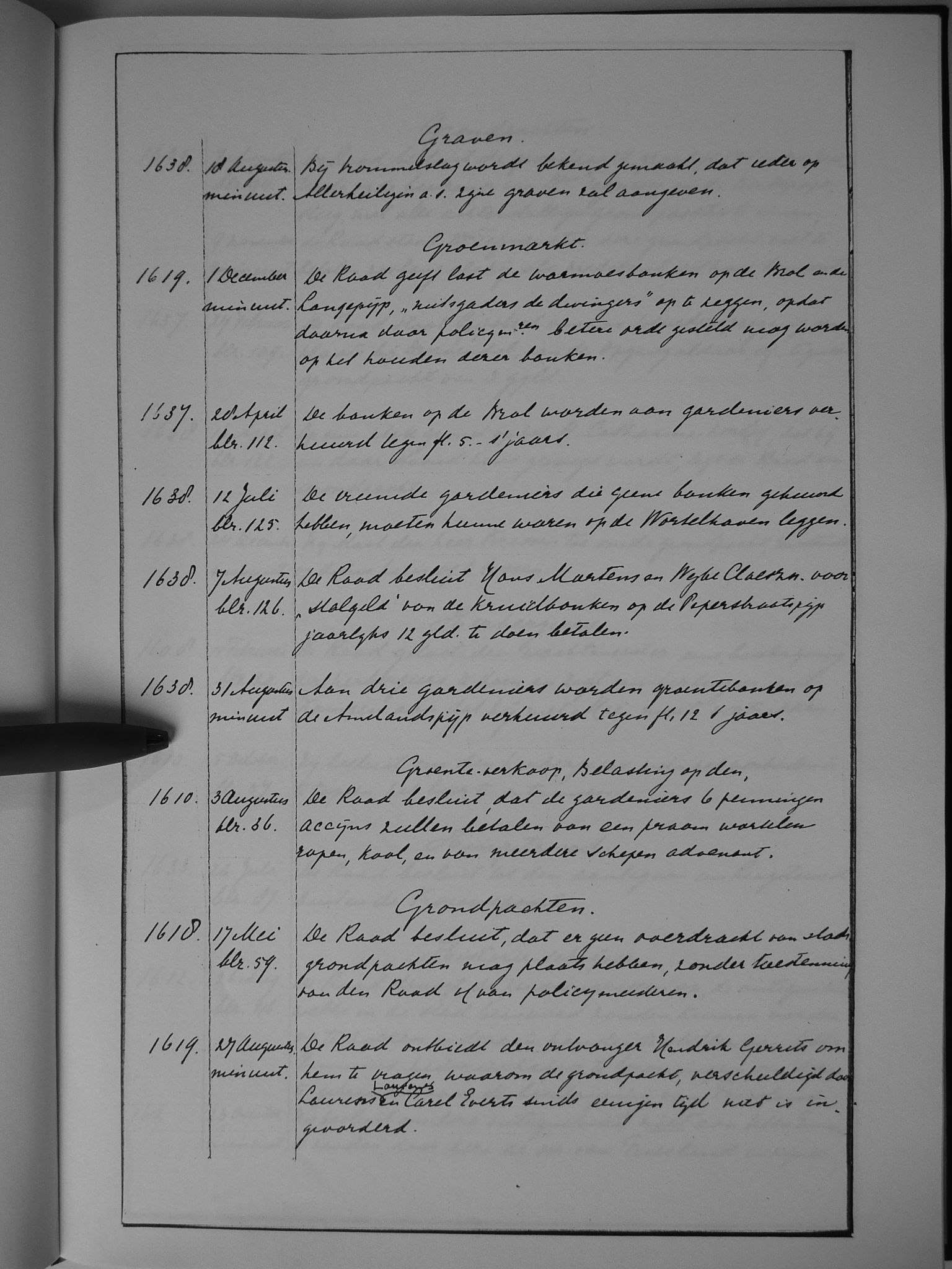 26 graven; Groenmarkt; groente-verkoop, belasting op de; grondpachten