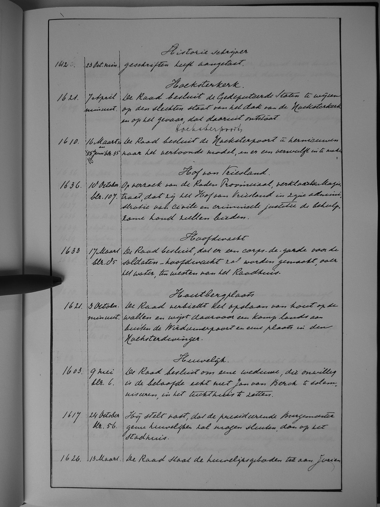28 historie-schrijver; Hoeksterkerk; Hoeksterpoort; Hof van Friesland; hoofdwacht; houtbergplaats; huwelijk