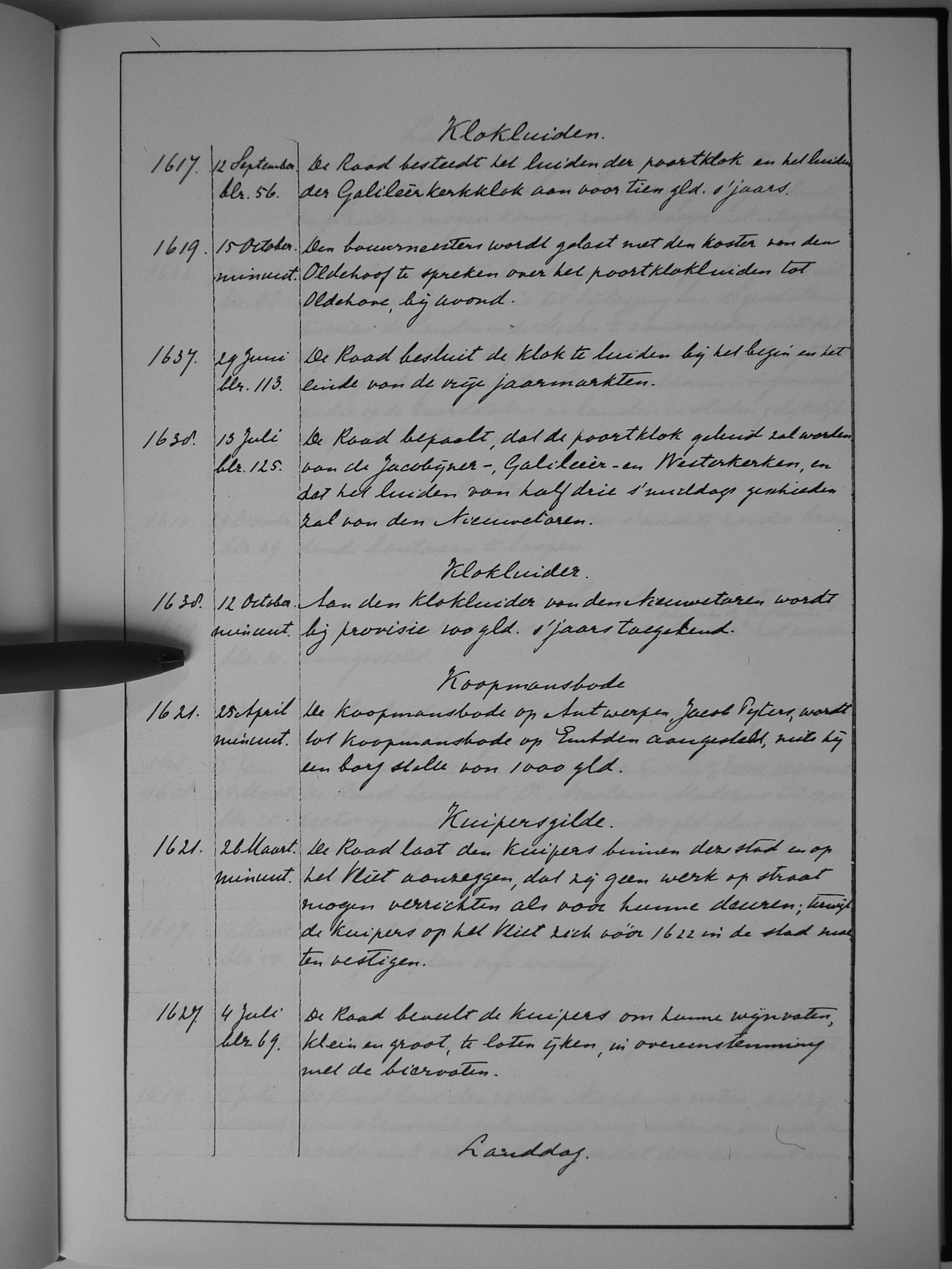34 klokluiden; klokluider; koopmansbode; kuipersgilde
