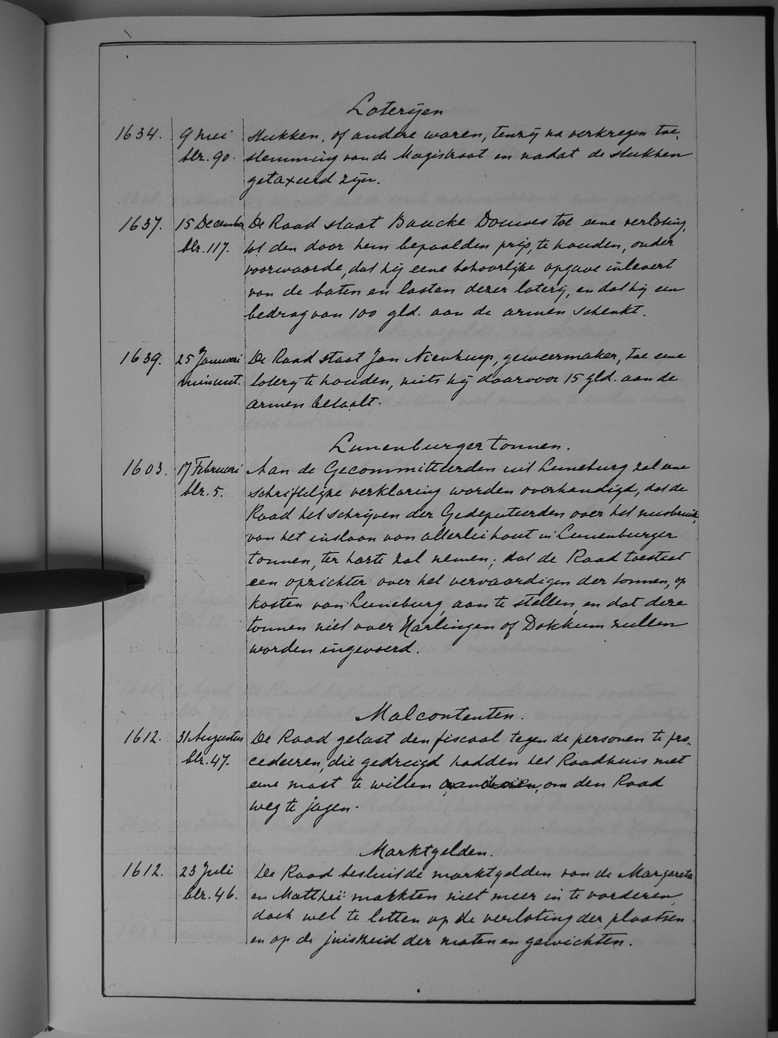 35 loterijen; Lunenburger tonnen; Malcontenten; marktgelden