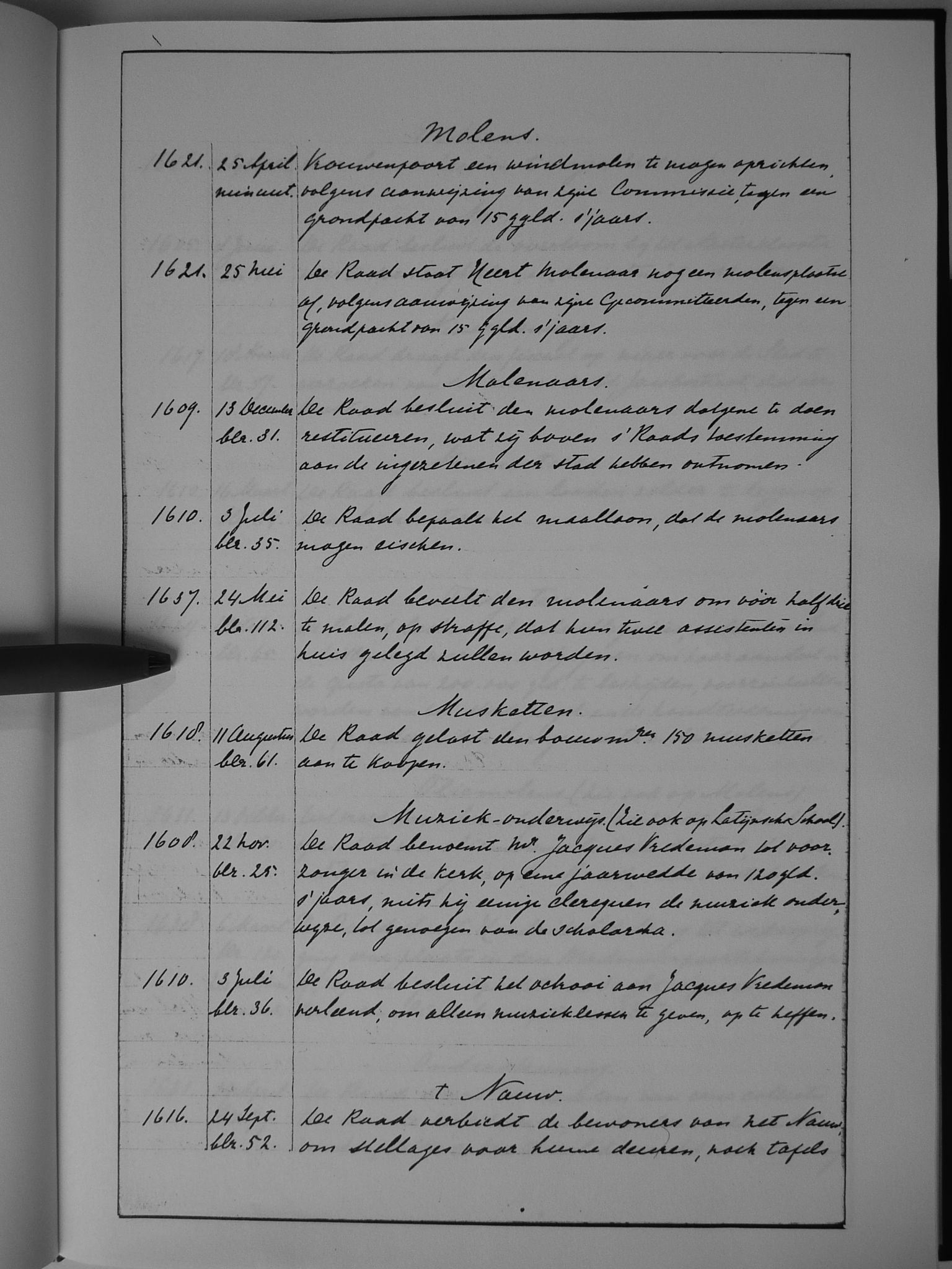 37 molens; molenaars; musketten; muziek-onderwijs (zie ook: Latijnse school; Nauw, 't