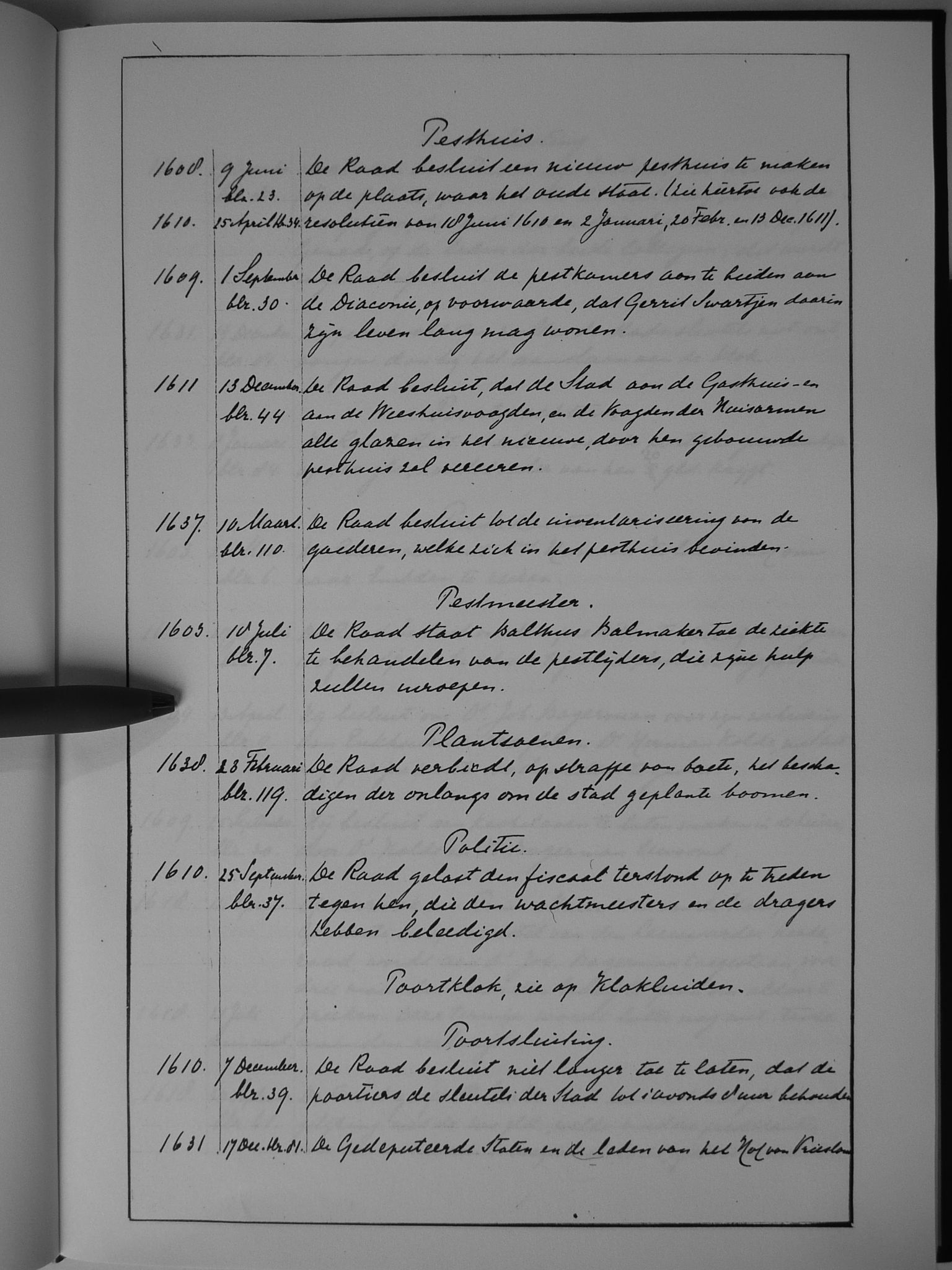 43 pesthuis; pestmeester; plantsoenen; politie; poortklok (zie: klokluiden); poortsluiting