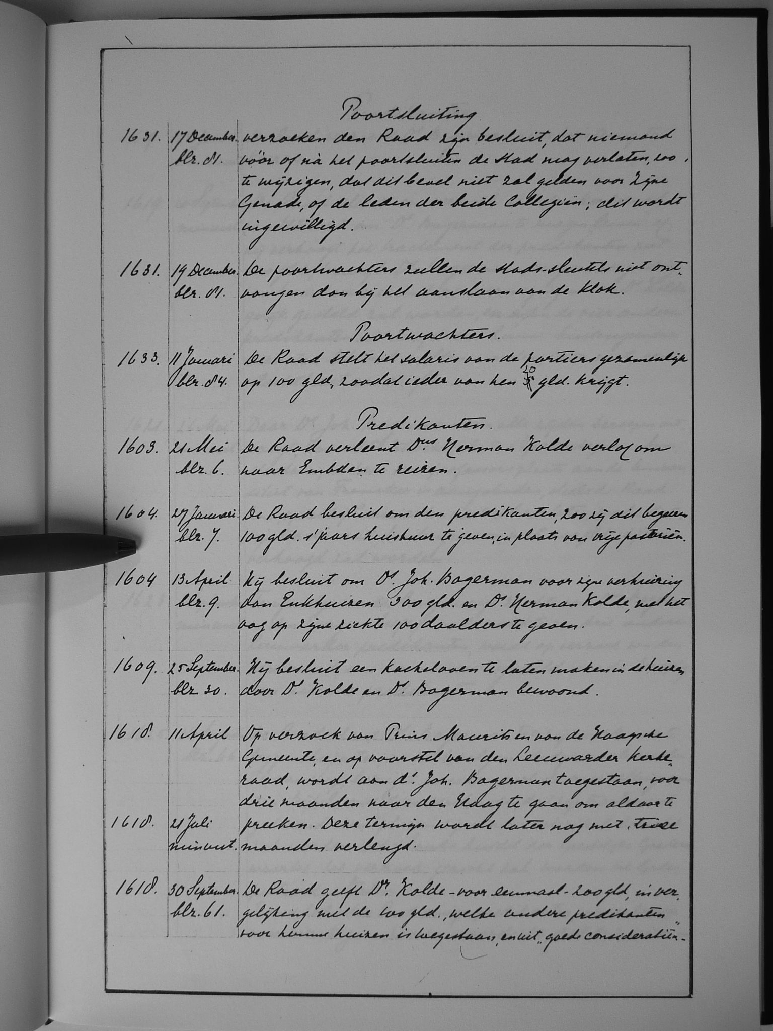 44 poortsluiting; poortwachter; predikanten