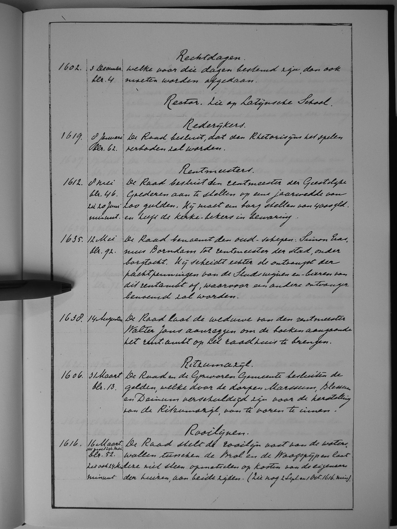 57 rechtdagen; rector (zie: Latijnse school); rentmeesters; Ritzumazijl; rooilijnen