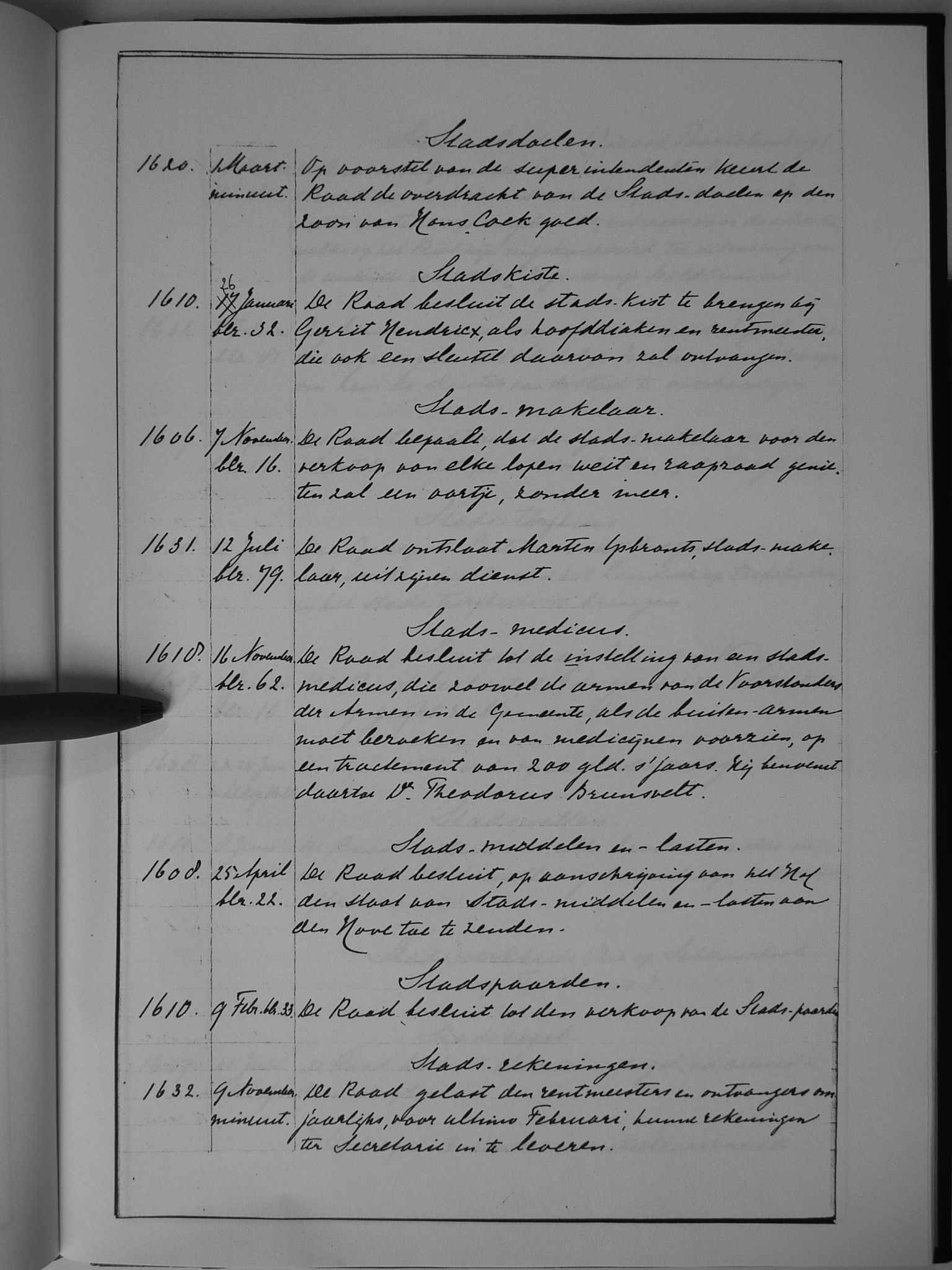 66 stadsdoelen; stadskiste; stads-makelaar; stads-medicus; stads-middelen en -lasten; stadspaarden; stads-rekeningen