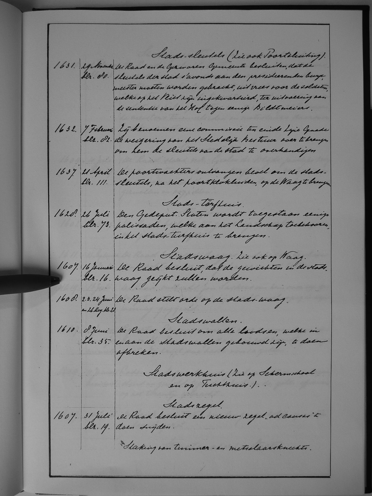 67 stads-sleutels (zie ook: poortsluiting); stads-turfhuis; stadswaag (zie ook: Waag) stadswallen; stadswerkhuis (zie schermschool, tuchthuis); stadszegel