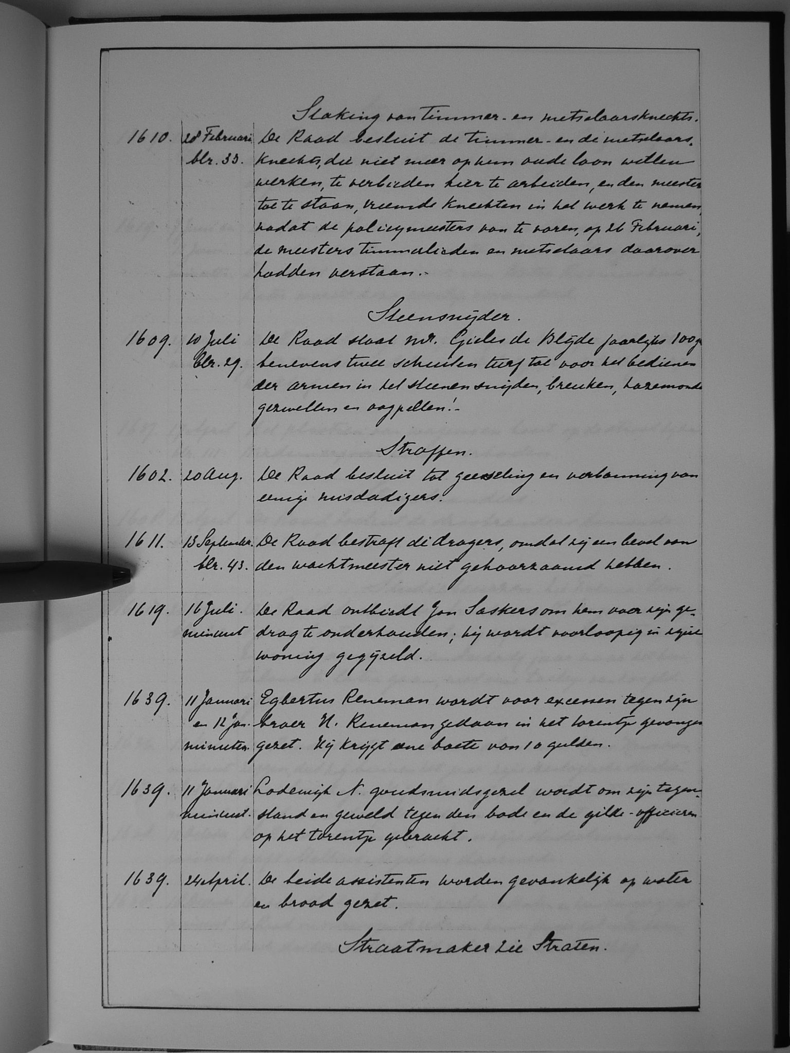 68 staking van timmer- en metselaarsknechts; steensnijder; straffen; straatmaker (zie: straten)