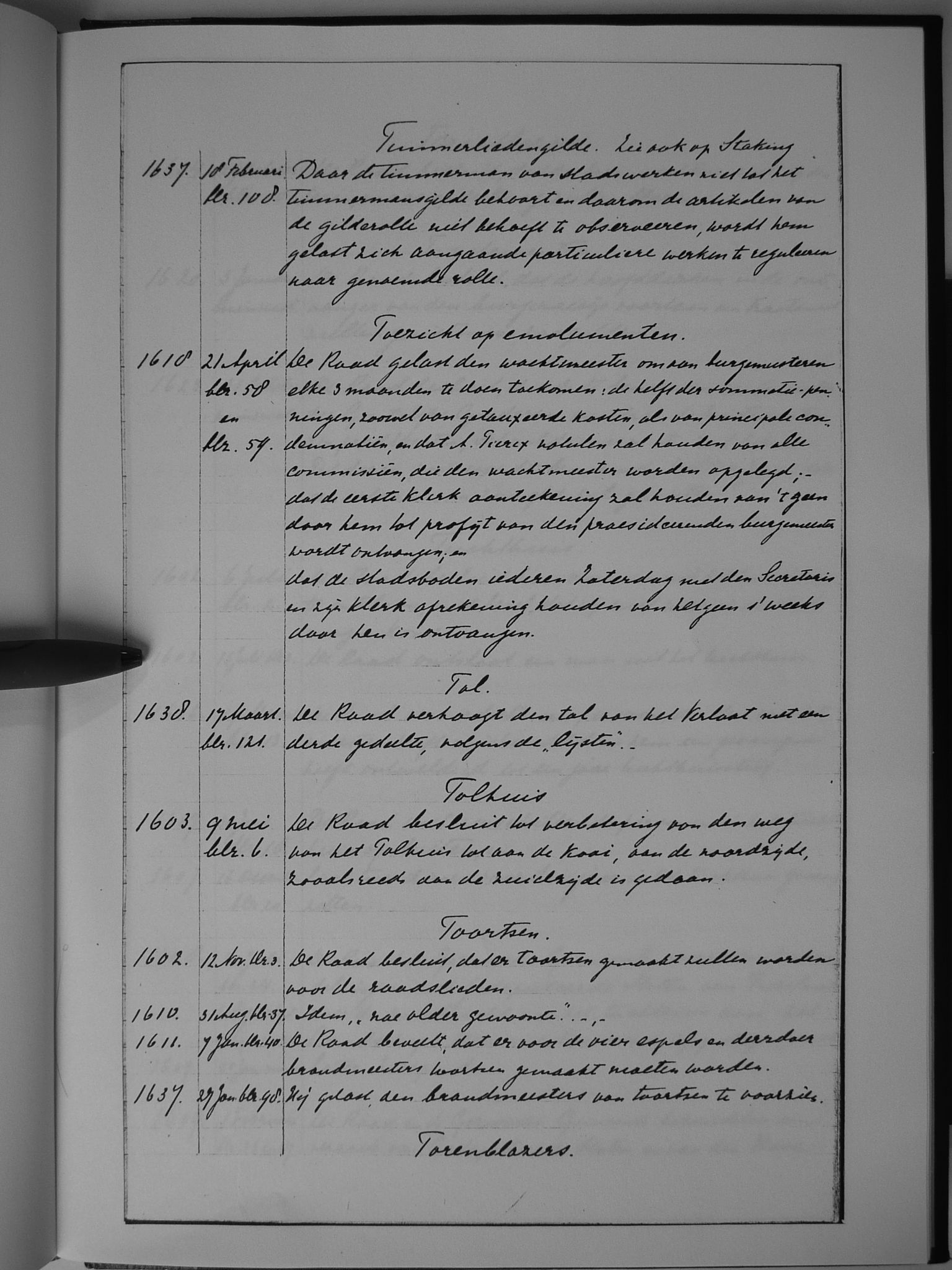 71 timmerliedengilde (zie ook: staking); toezicht op emolumenten; tol; tolhuis; toortsen