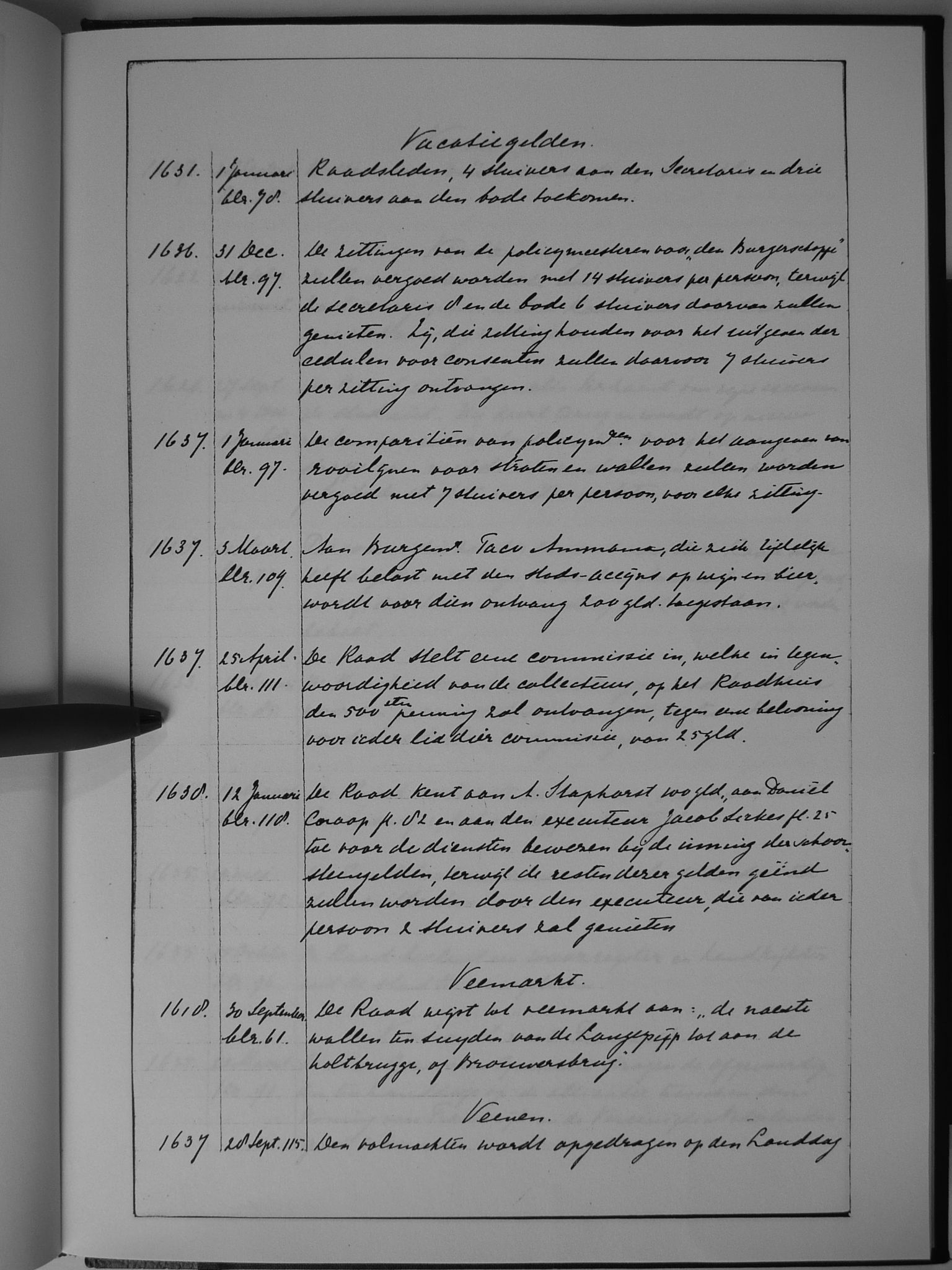 76 vacatiegelden; veemarkt; venen