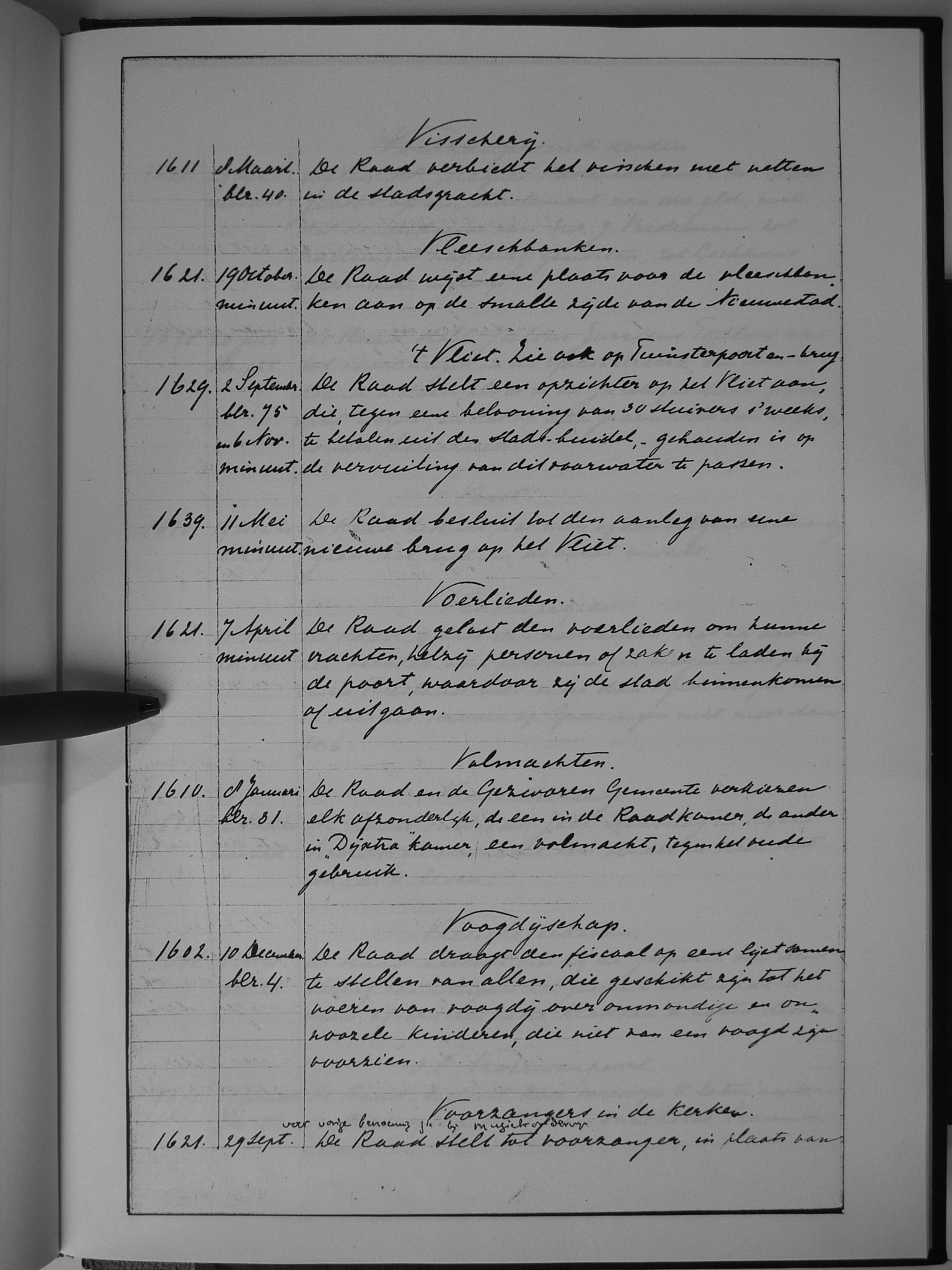80 visserij; vleesbanken; Vliet, 't (zie ook: Tuinsterpoort en -brug); voerlieden; Volmachten; voogdijschap; voorzangers in de kerken (zie ook: muziekonderwijs)