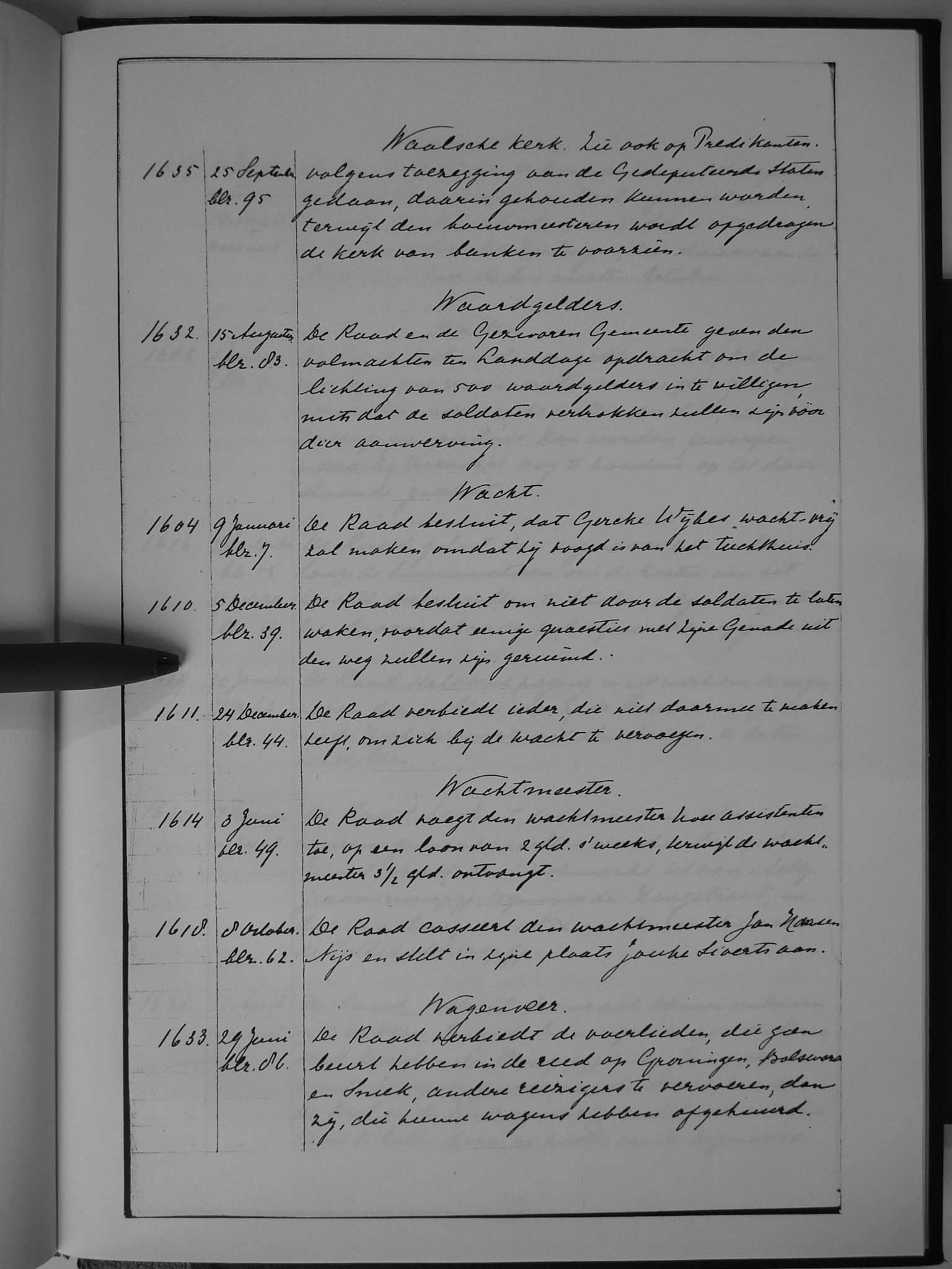 84 Waalse kerk; waardgelders; wacht; wachtmeester; wagenveer