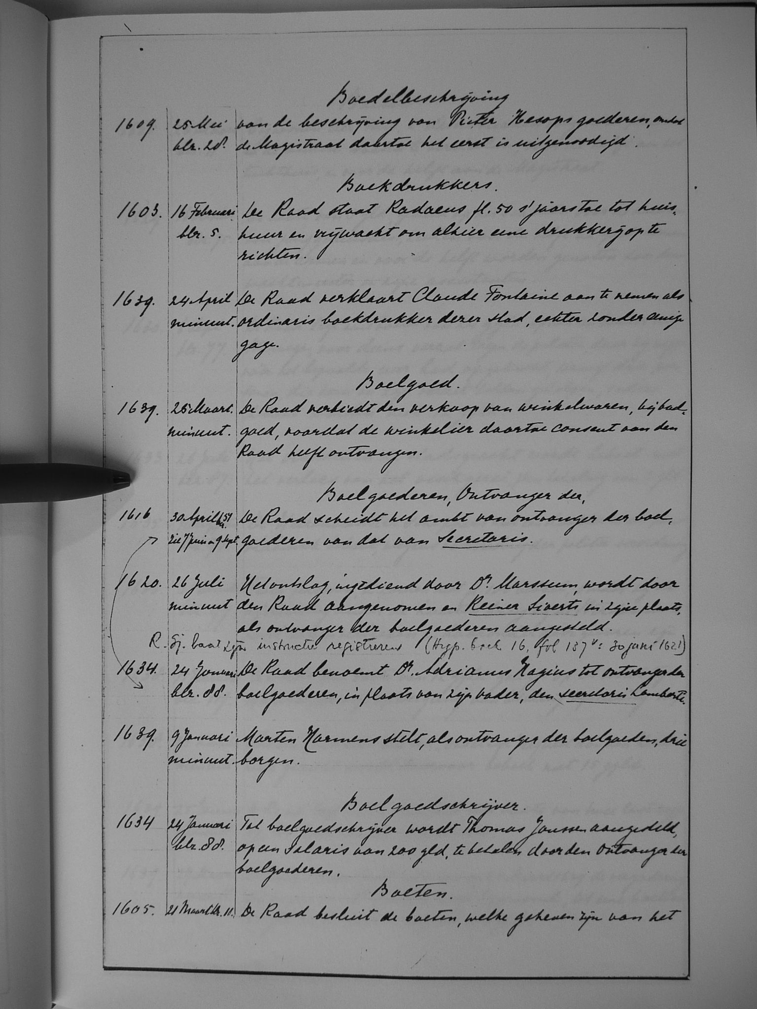 09 boedelbeschrijving; boekdrukkers; boelgoed; boelgoederen, ontvanger der; boelgoedschrijver; boeten