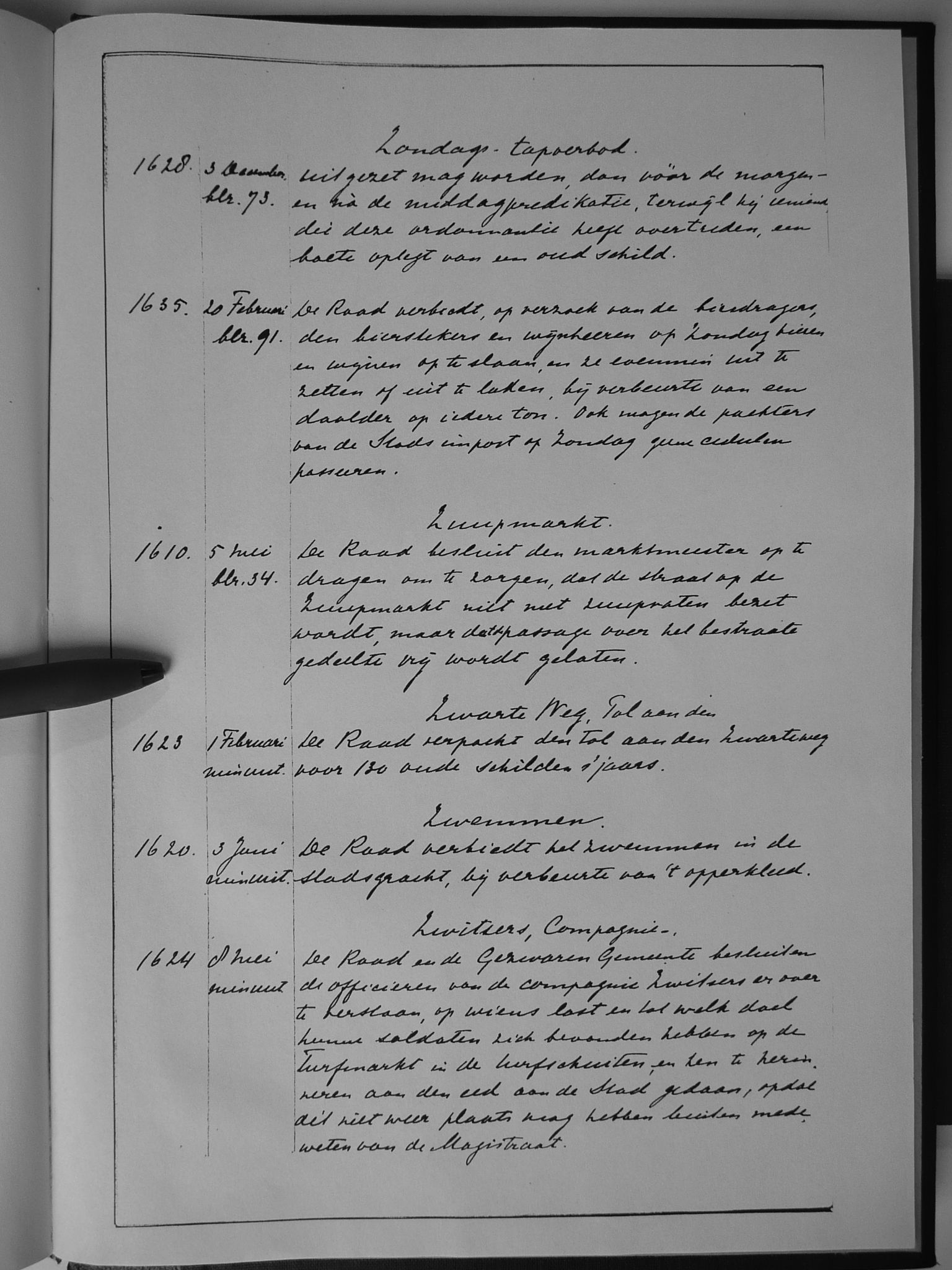 92 zondags-tapverbod; Zuupmarkt; Zwarte weg, tol aan de; zwemmen; Zwitsers, compagnie