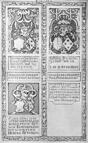 Friens. Zerk voor Douwe van Sytzama, † 3-7-1607; boven gemerkt: 16 HP 08; zie Jaarb. Fr. Adel III