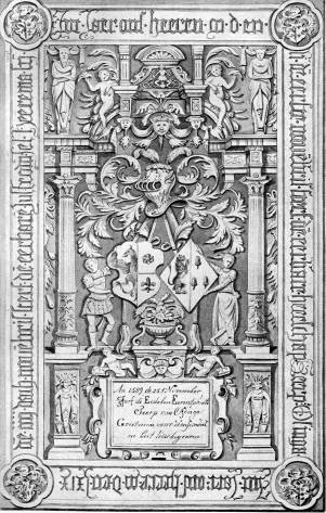 195 kan dat wellicht nader worden onderzocht. Vóór alle verklaring dient het feit van B. G.'s overgang vastgesteld. Omstreeks 1547 zien wij dé eerste pogingen om uit Italië te komen. Waarheen is nog niet bepaald. In 1552 is B. G. op weg naar Vlaanderen. In 1554 is hij er aangekomen. Met dit jaarcijfer n.l. én getèekend door B. G. ligt te Schettens een zerk voor Seerp Ockinga († 1551) en Jel Heerema († 1562). Die steen is zóó verschillend van al wat B. G. tot nu toe vertoonde, dat men aan een werk van zijn hand niet zou gelooven, als de signatuur niet allen twijfel onmogelijk maakte. Binnen een omlijsting als die op de vorige zerken zien wij het veld ook nu nog in tweeën gedeeld, maar niet door een platten band, doch door een soort vloer, rustend op de piedestals van twee zuilen, die een zeer samenge- steld hoofdgestel dragen. In het benedenvak, tusschen de piedestals, wier voorvlak een vrouwelijke herme vertoont, is een vierkant bord, met opschrift in Romeinsche kapitalen, gevat in een lijst van rolwerk - een rolwerk-cartouche - waarboven twee, op één knie achterover leunende, putti; ter weerszijden een gehelmd masker met C-spiralen. In het bovenste vak herkennen we de alliantiewapens met helm en helmkleeden, alweer als bladwefk behan- deld - maar de akantus is geheel verbasterd, en er is meer blad dan rank; tusschen de schildhoudende figuren staat een schaalvormige vaas met bloemen. De zuilen staan op basis en plint, dragen kapiteel en dekplaat en hebben een schacht, die, onderaan geornamenteerd, verder canneluren vertoont. Het hoofdgestel - effen architraaf, versierd fries en kroonlijst met triglyphen - is boven de dekplaten der kapiteelen verkropt en in het midden gebroken. Door twee consoles aan de binnenhoeken ondersteund, draagt het een, wederom in het midden gebroken, rondboog, op welks opgaande segmenten een naakte genius in akanthusranken leunt. Links en rechts een gedrapeerde herme, achte | 196 wier hoofd het in knoopen opgebonden "hangende doekje" met losse einden. De bekroning dezer ingewikkelde compositie is zelf wederom zeer samengesteld. Op een hoofdgestel, - ge- dragen op de ionische voluten van twee caryatidenkoppen, door een "hangend doekje" met een, in hun midden aan- gebracht, gekroond masker verbonden - staan, tusschen de verkroppingen boven de voluten, twee pilastertjes. Zij flankeeren een trapeziumvormige nis, wier ingebogen op- gaande zijden door C-spiralen zijn gesierd, en die afgedekt is door een rondboogfronton met schelpornament. In de nis een kortgekleed figuurtje, dat in iedere hand een kron- kelende slang knelt. Een vergelijking met de steenen uit B. G.'s eerste periode toont, dat de omlijsting, de tweedeeling van het veld, de opschriftplaat in het onderste vak, de schilden met toebe- hooren in het bovenste, zijn gebleven. Nieuw is de archi- tectuur: de zuilen - geen kandelaber-balusters meer - willen geen ornament meer zijn; zij schuilen niet half achter de omlijsting weg om een soort binnenrand te vor- men, maar staan vrij op een vooruitspringend basement onder een overspringend hoofdgestel: er is diepte en per- spectief in de teekening gekomen. Dat blijkt ook uit den stand der voeten van de schildhouders. Nieuw is verder de bloemvaas, nieuw zijn de hermen, de hangende doekjes, de maskers (wél te onderscheiden van de halve-maan maskers, uit bladranden gevormd, op den steen van Tjaling van Botnia te Franeker); nieuw zijn de caryatiden en nieuw is de rolwerk-cartouche om de opschriftplaat. En al dat nieuws wijst naar Vlaanderen. Er zijn ongetwijfeld tusschen de zerken van Sexbierum en Jelsum van 1547 en die te Schettens van 1554 nog andere dan de ons alleen bekende steen te Hallum van 1552 door B. G. gebeiteld, die den overgang van zijn eerste, italieniseerende, periode naar zijn tweede, zoo kras vlaam- | ||