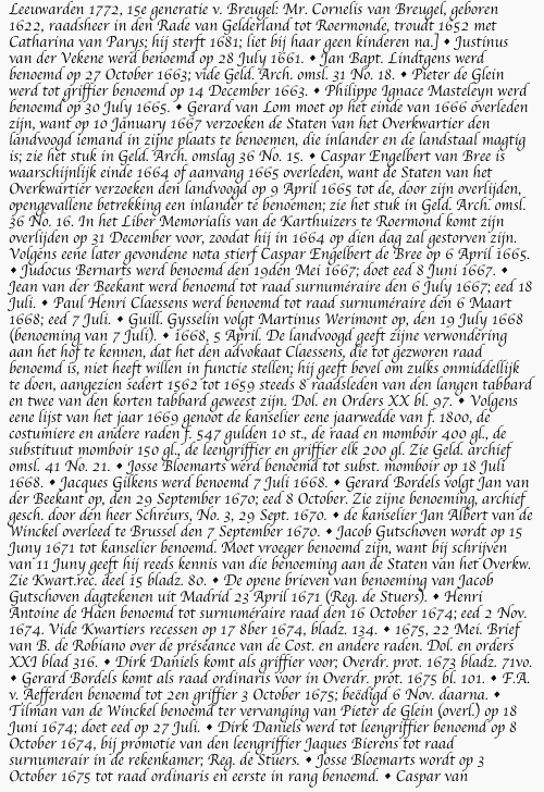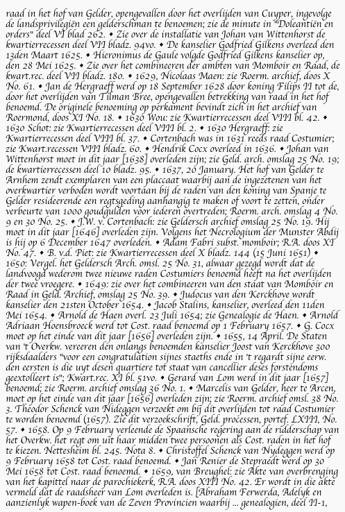 Naamlijst der kanseliers in den Raad van Gelderland te Roermond, uit: J.L.