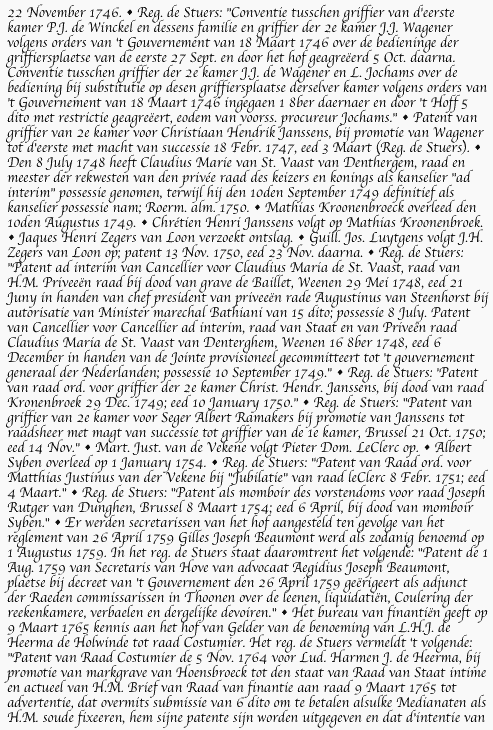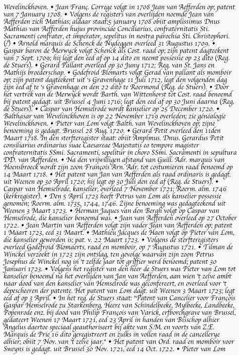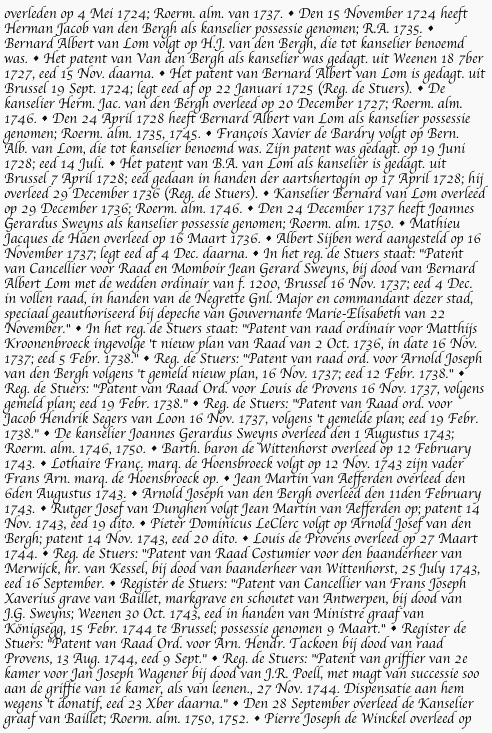 1767 den eed af; hij overleed in 1779. 20. WILLEM JOSEF LUYTGENS , Raadsheer in den Raad. Zijn grootvader HENDRIK