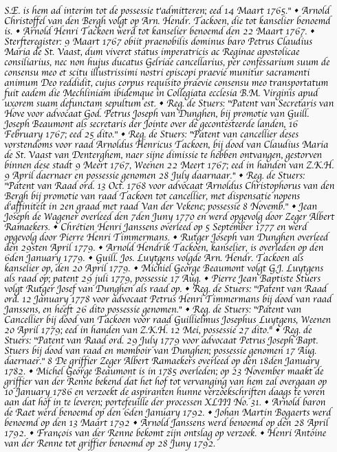 daarna Raad in het Souverein Hof, laatstelijk Kanselier. Als zoodanig legde hij den 22 Maart