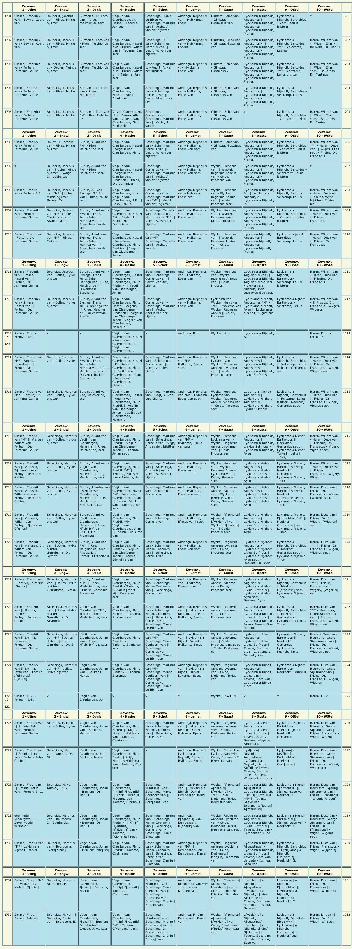 | Almanak Westergo | 1698 | 1701 | 1704 | 1707 | 1710 | 1713 | 1716 | 1719 | 1722 |